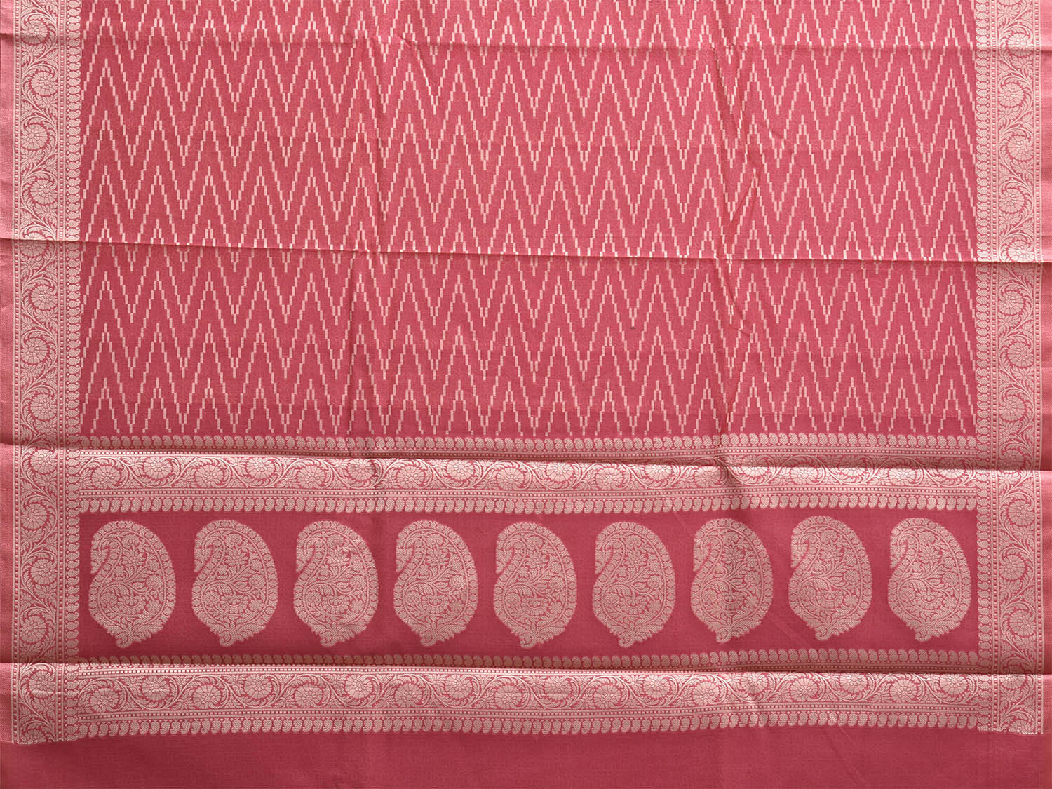 Light Red Dhakai Jamdani Cotton Viscose Saree with Zig-Zag and Mango Pallu Design dj0139