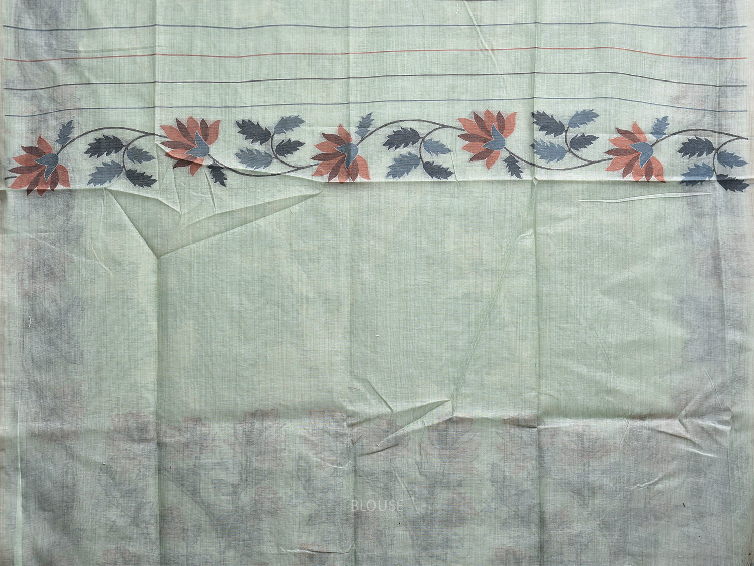 Light Turquoise Dhakai Jamdani Cotton Viscose Saree with Border and Pallu Floral Design. These are some of the traditional Dhakai Jamdani designs, these sarees have geometric designs and sometimes floral or combination of both. We advice gentle handwash separately for fabric care.