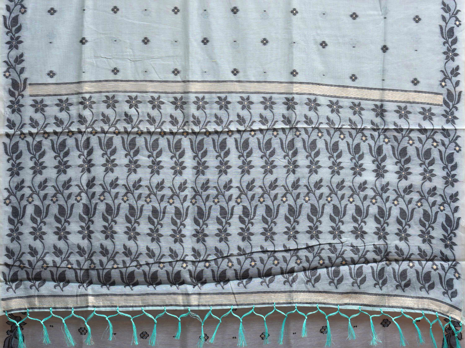 Light Turquoise Dhakai Jamdani Cotton Viscose Saree with Floral Border and Pallu Design dj0206
