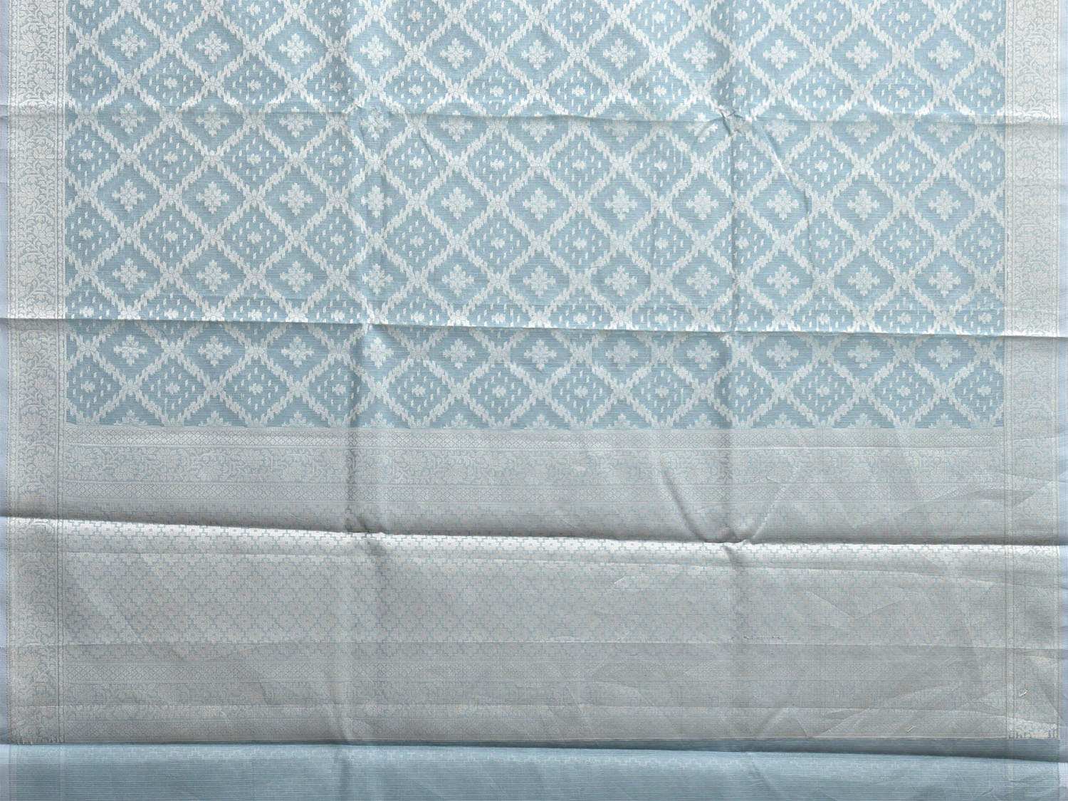 Light Turquoise Dhakai Jamdani Cotton Viscose Saree with Grill Body and Pallu Design. These are some of the traditional Dhakai Jamdani designs, these sarees have geometric designs and sometimes floral or combination of both. We advice gentle handwash separately for fabric care.