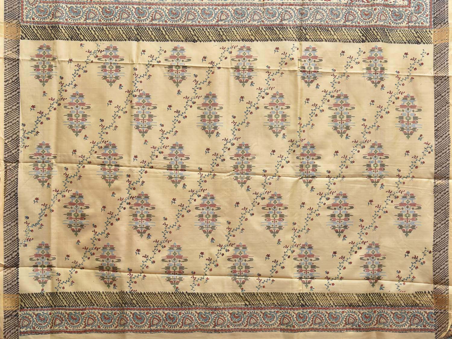 Light Yellow Digital Print Uppada Silk Handloom Saree with All Over Floral and Pallu Design. For fabric care we advise dry clean.