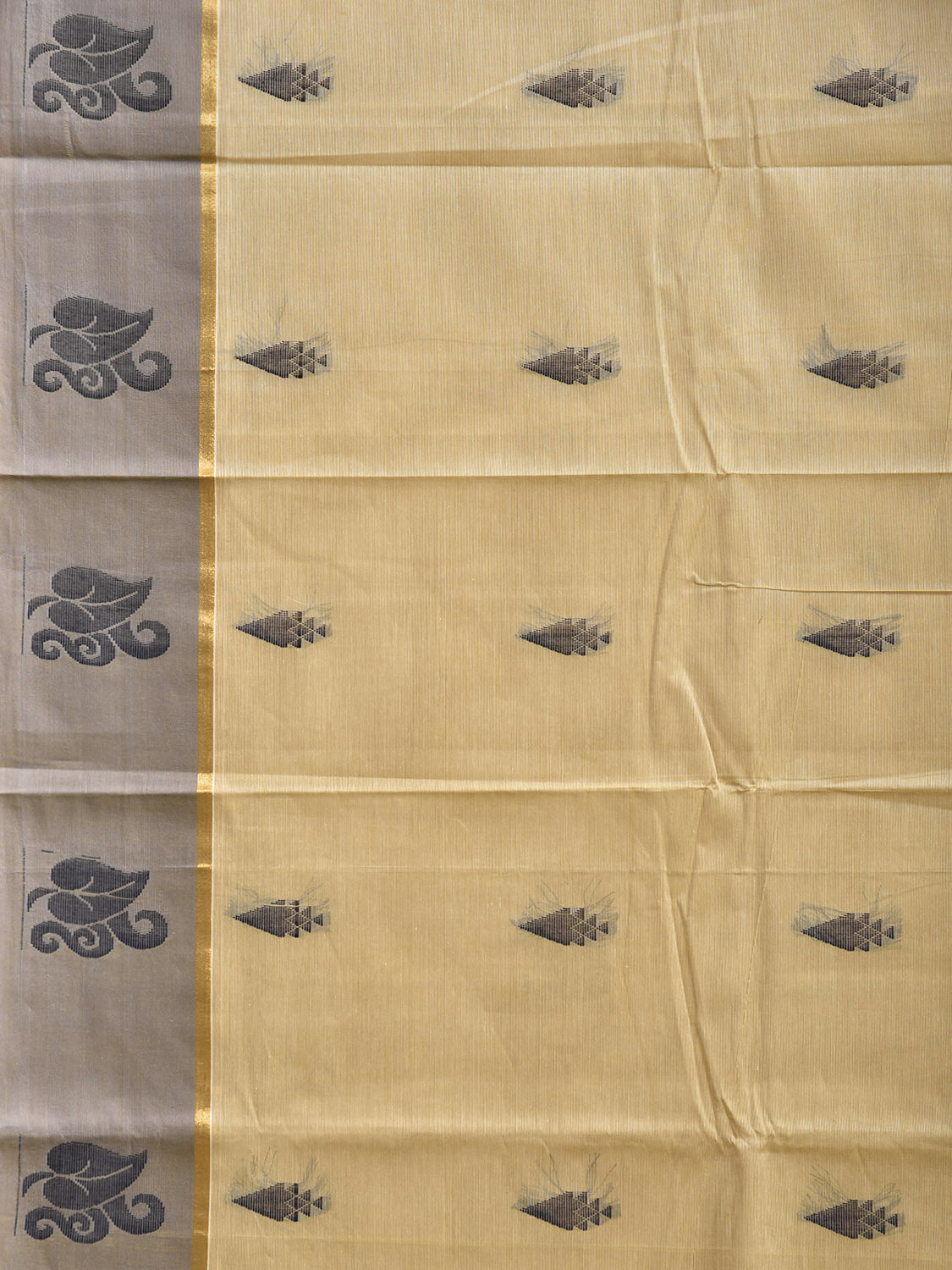 Light Yellow Venkatagiri Cotton Saree with Body Buta and Pallu Design v0157