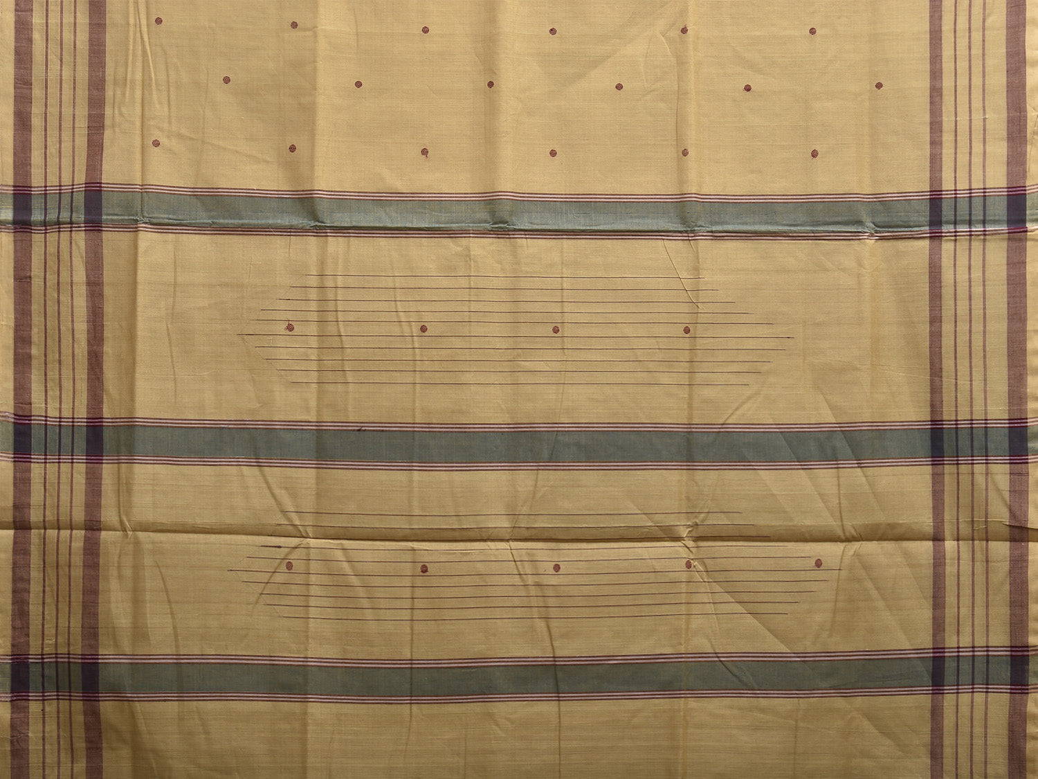 Light Yellow Venkatagiri Cotton Saree with Strips Pallu and Border Design No Blouse v0203