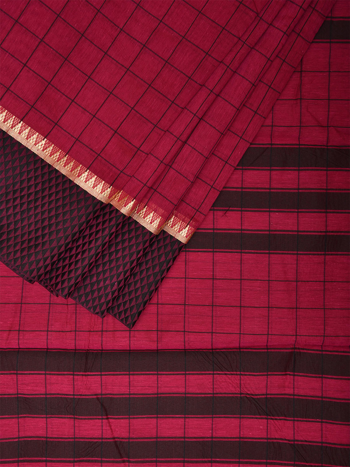 Magenta and Black Bamboo Cotton Saree with Big Checks Design No Blouse bc0449