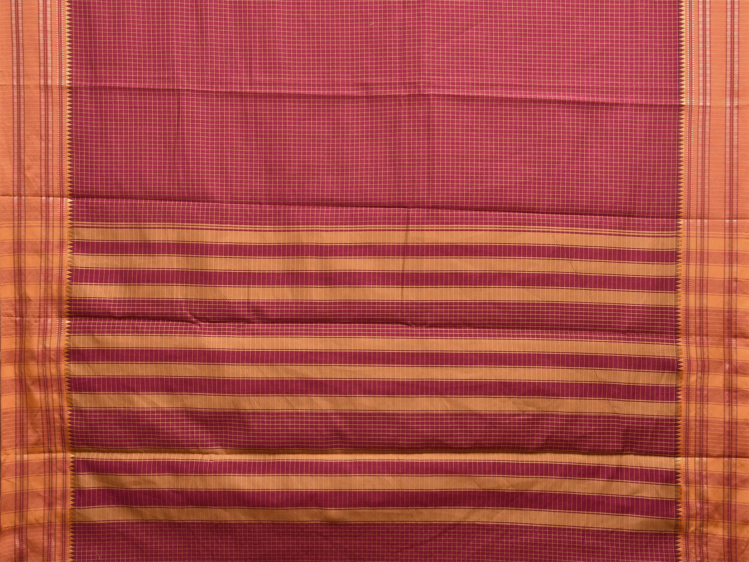 Magenta and Mustard Bamboo Cotton Saree with Checks Design No Blouse bc0516