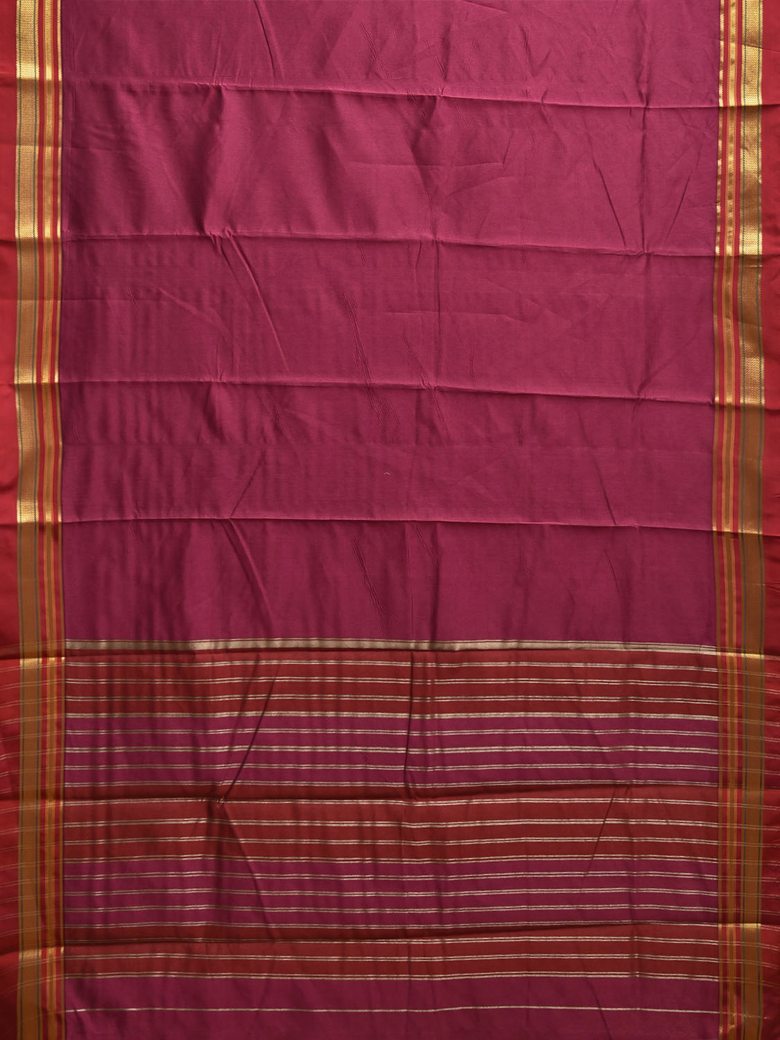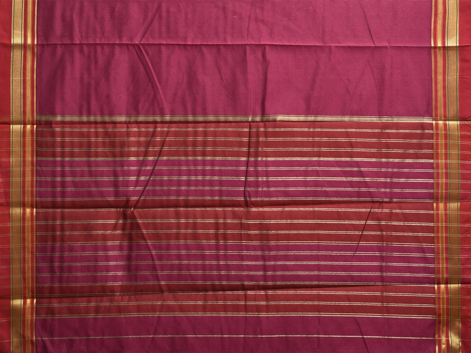 Magenta and Red Bamboo Cotton Viscose Silk Plain Saree with Strips Pallu Design No Blouse bc0924