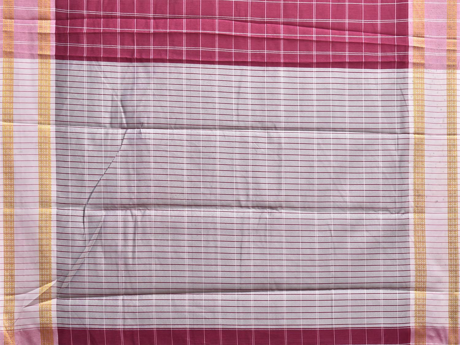Magenta and White Bamboo Cotton Saree with Big Checks Design No Blouse bc0981
