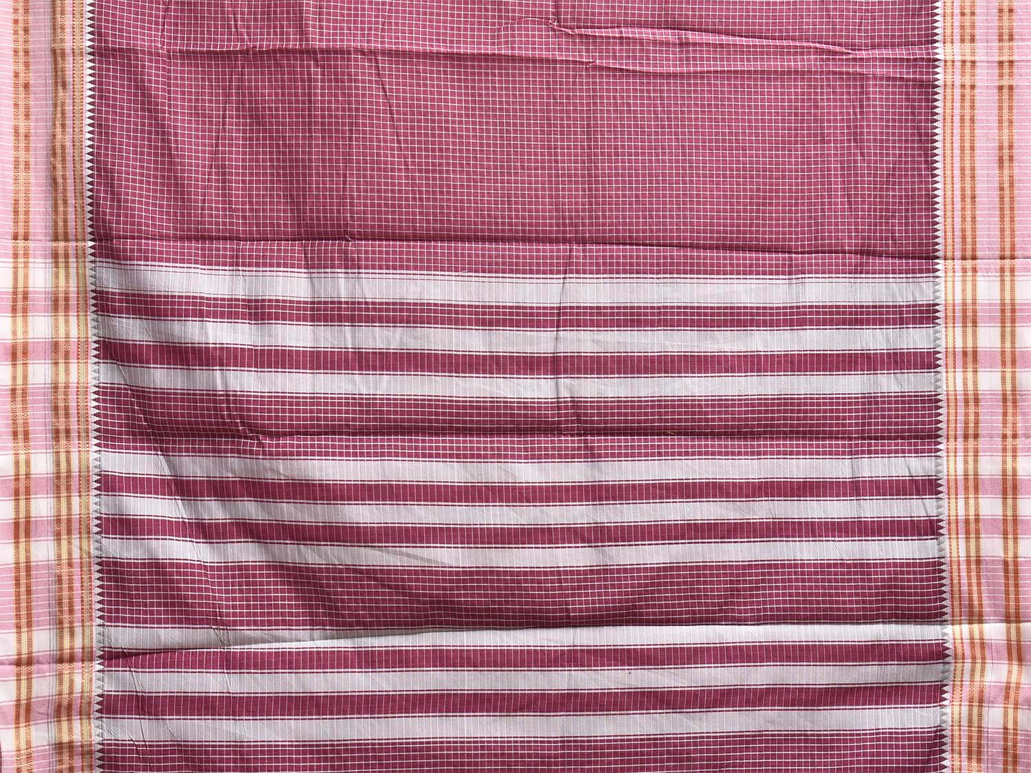 Magenta and White Bamboo Cotton Saree with Checks Design No Blouse bc0963