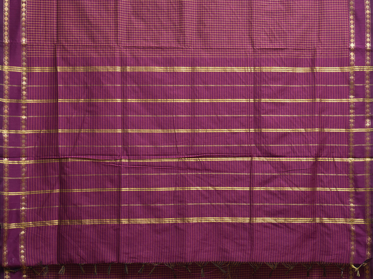 Magenta Gadwal Cotton Viscose Saree with Checks and Border Design g0555