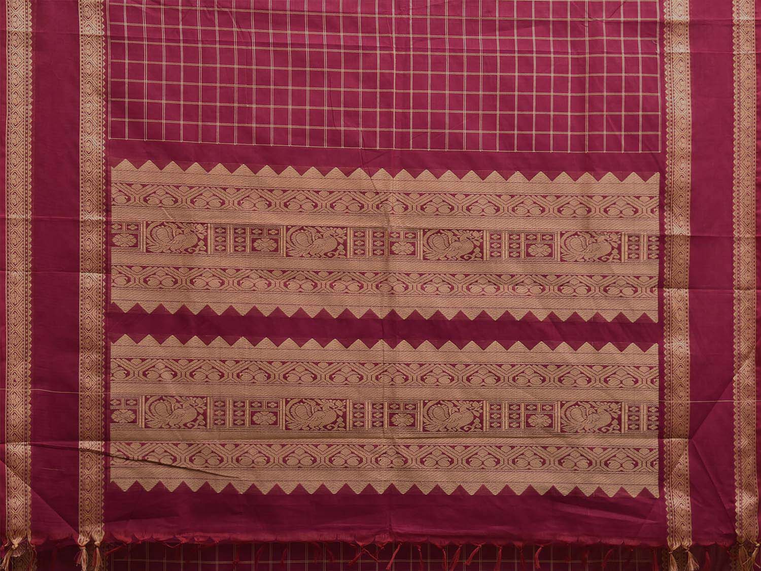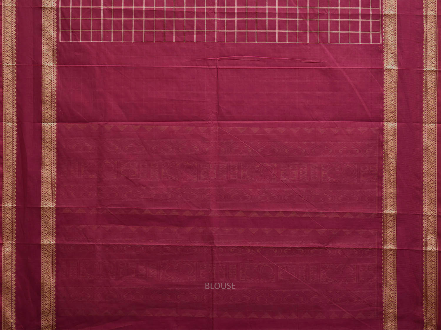 Magenta Kanchipuram Cotton Saree with Checks and Pallu Design k0974