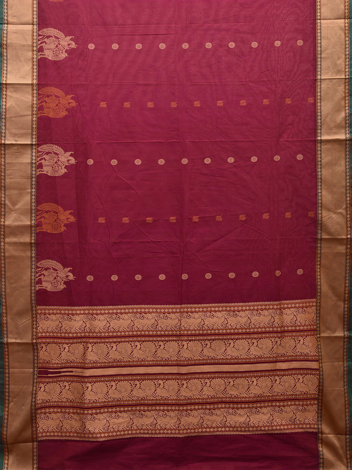 Magenta Kanchipuram Cotton Saree with Pallu and Border Design k0682