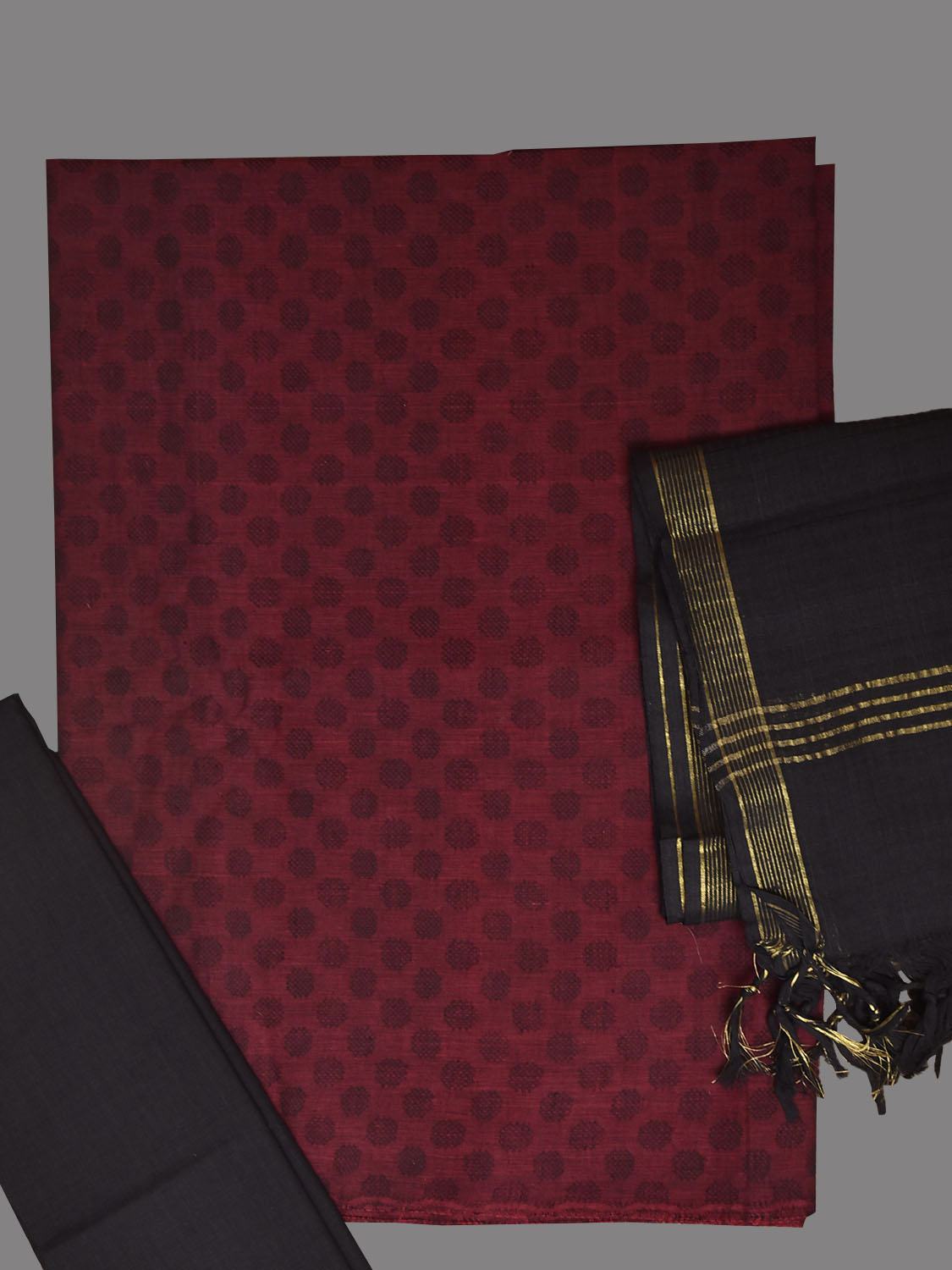 Maroon and Black Mangalgiri Cotton Dress Material with Top Bottom and Strips Dupatta dm0102