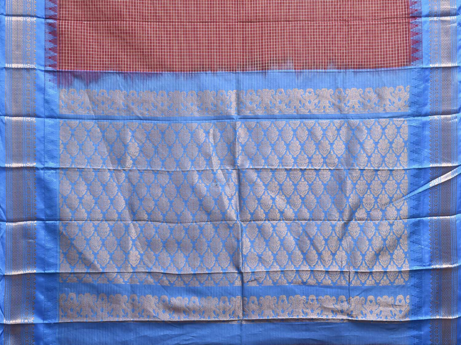 Maroon and Blue Gadwal Cotton Body Viscose Border Saree with Checks Design No Blouse g0625