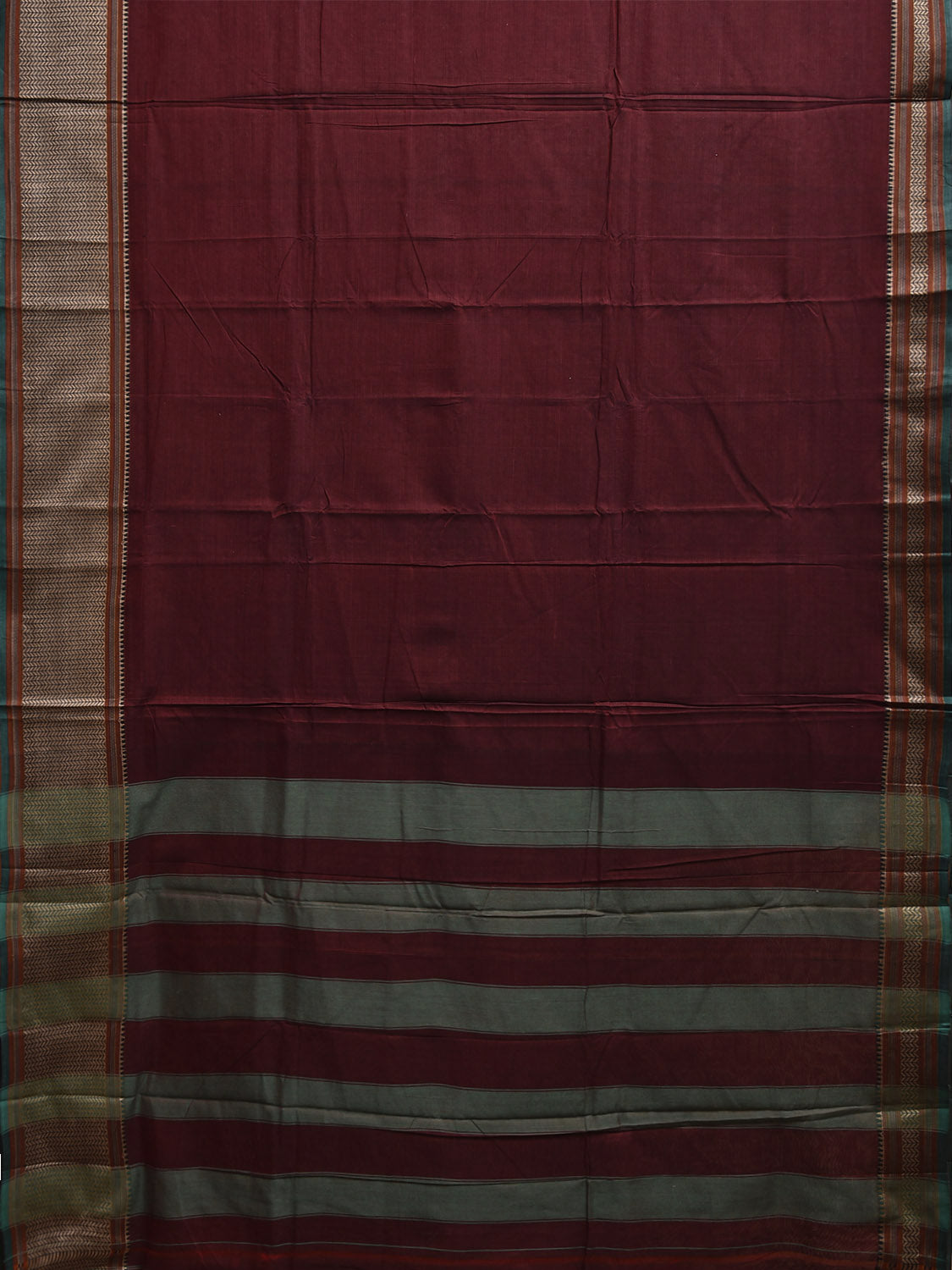 Maroon and Grey Kanchipuram Cotton Plain Saree with Strips Pallu Design No Blouse. Traditional Simple South Indian Attire Saree for any Casual Occasions. As it’s a cotton saree we advice gentle handwash separately for fabric care. This saree has no blouse.