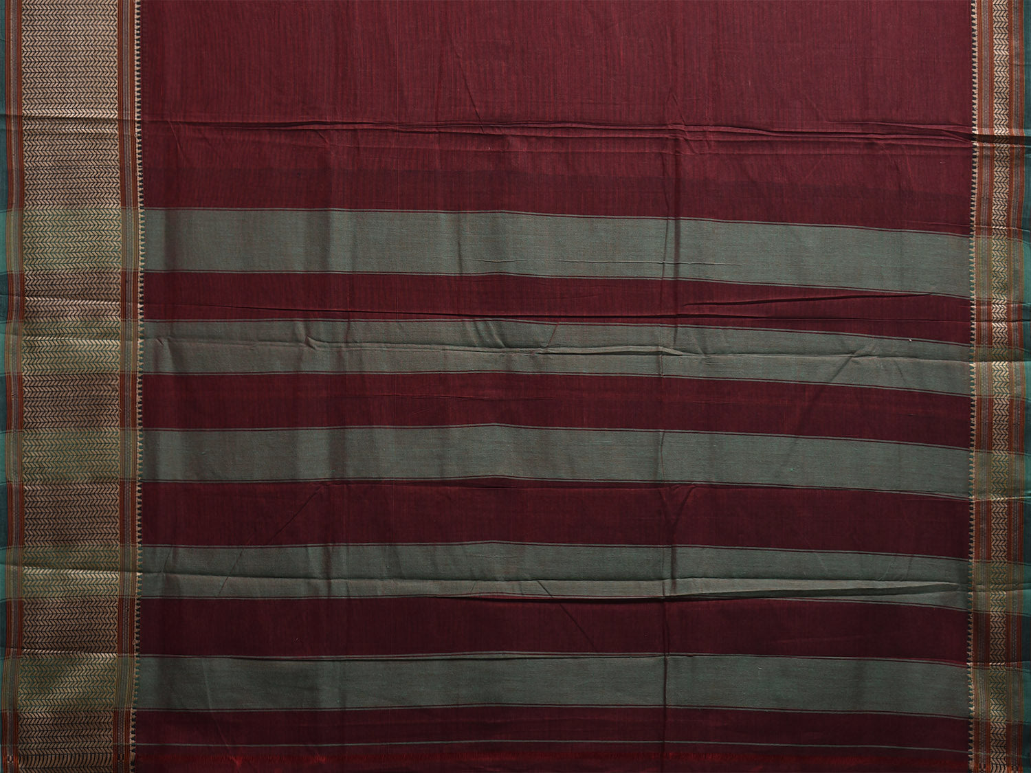 Maroon and Grey Kanchipuram Cotton Plain Saree with Strips Pallu Design No Blouse k0877