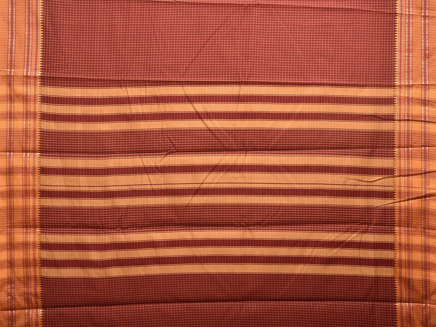 Maroon and Mustard Bamboo Cotton Saree with Checks Design No Blouse bc0475