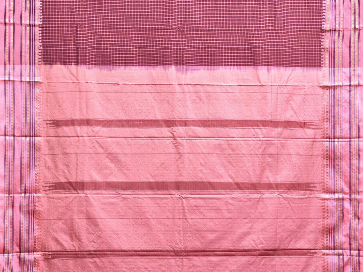 Maroon and Pink Narayanpet Silk Saree with Checks Design