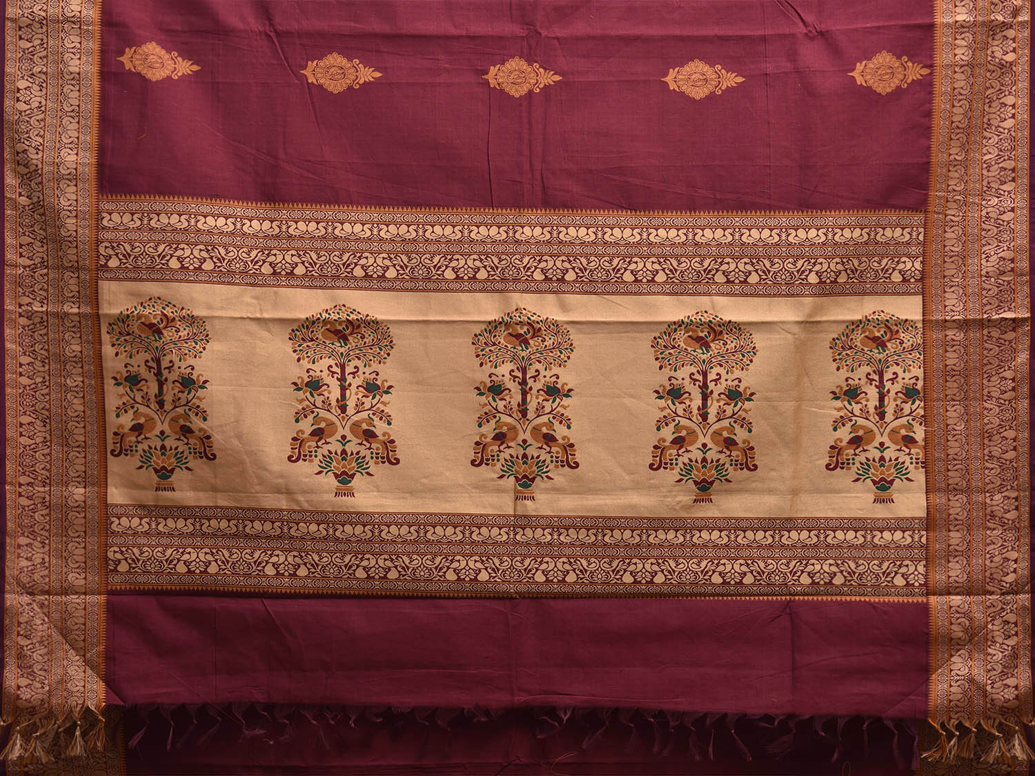 Maroon Kanchipuram Cotton Saree with Buta and Peacocks Pallu Design k0947