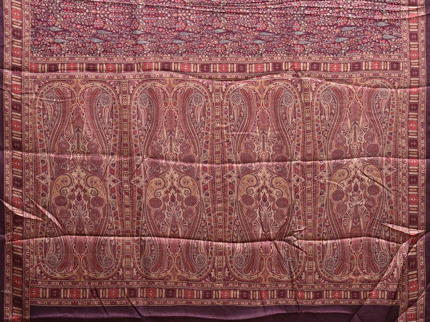 Maroon Pashmina Print Viscose Saree with Floral Body and Pallu Design. We advice gentle handwash separately.