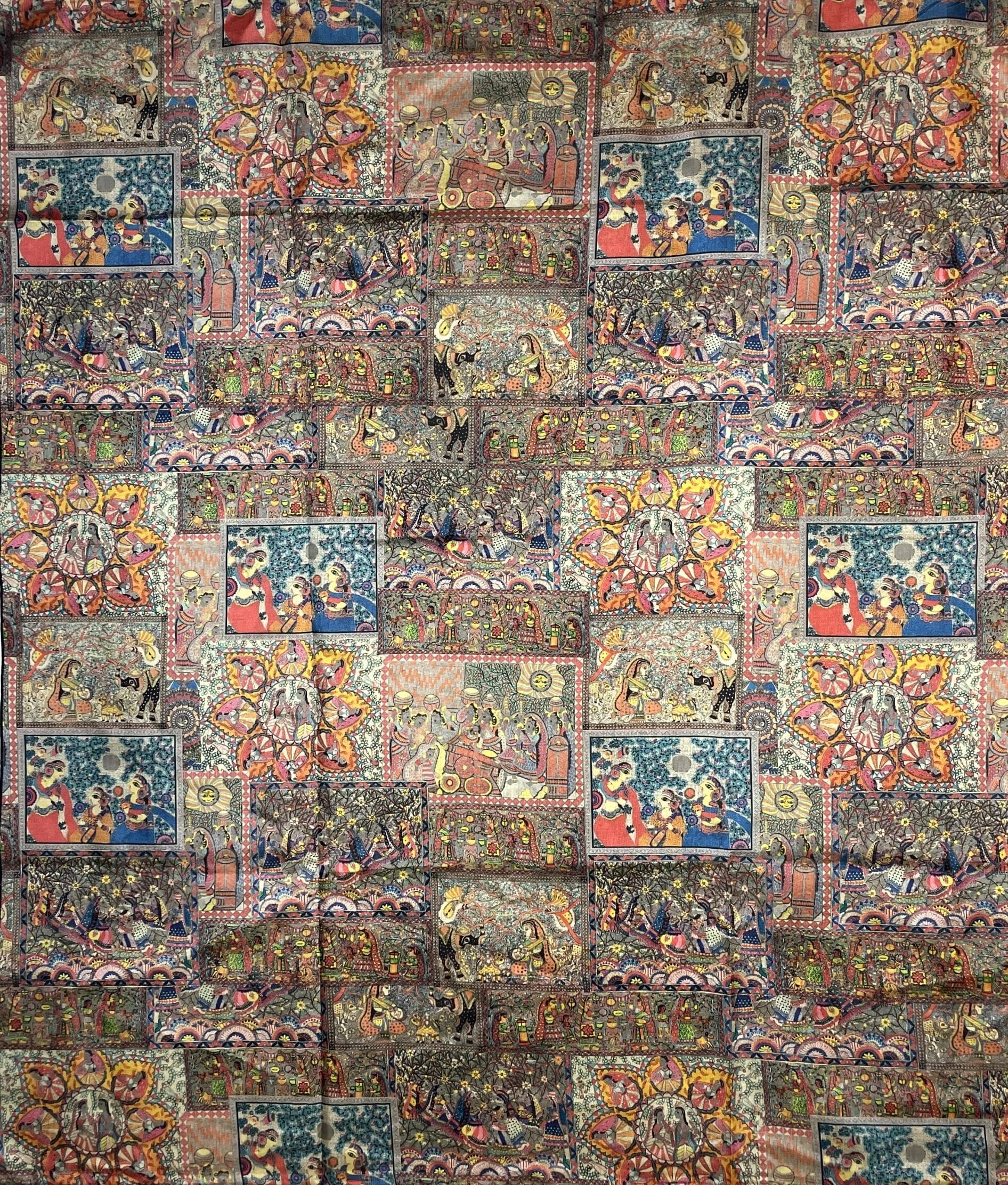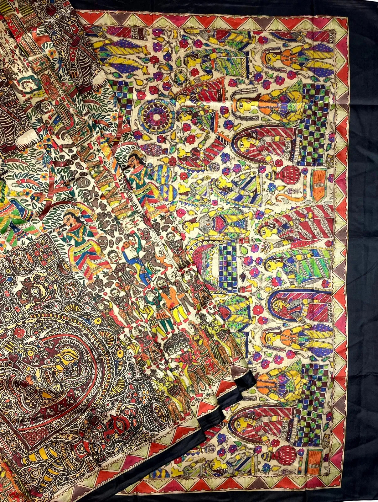 Multi Colour Black Border Madhubani Digital Printed Saree with Figures Design pr0068ap