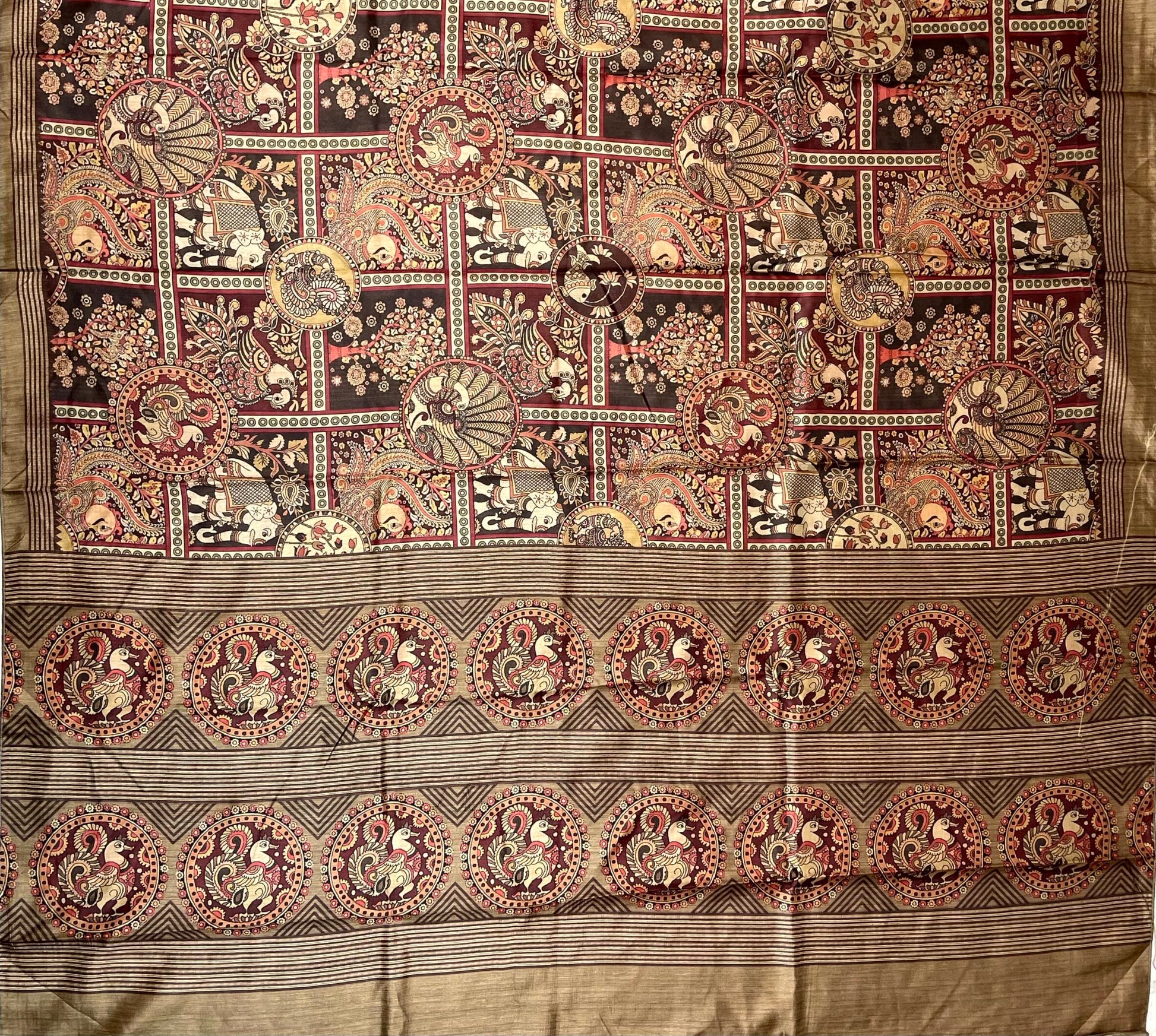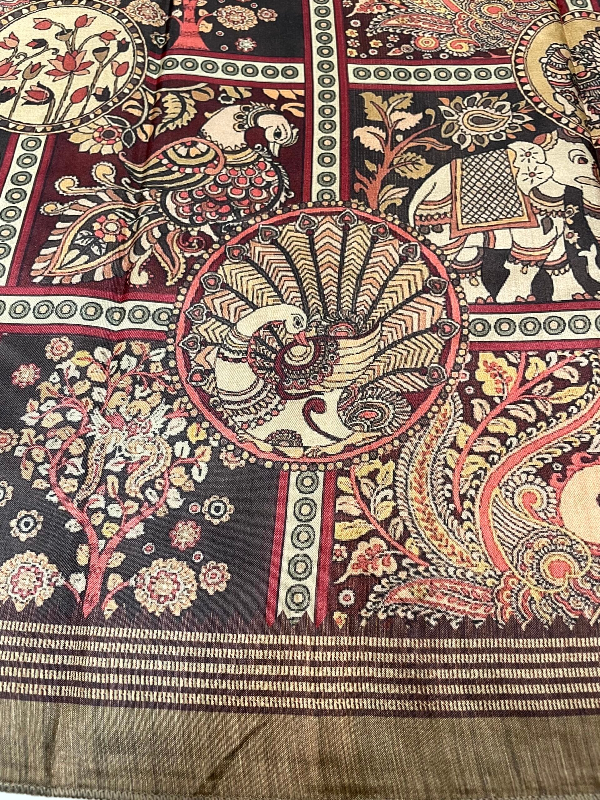 Multi Colour Digital Printed Satin Silk Saree with Birds and Floral Design pr0077ap