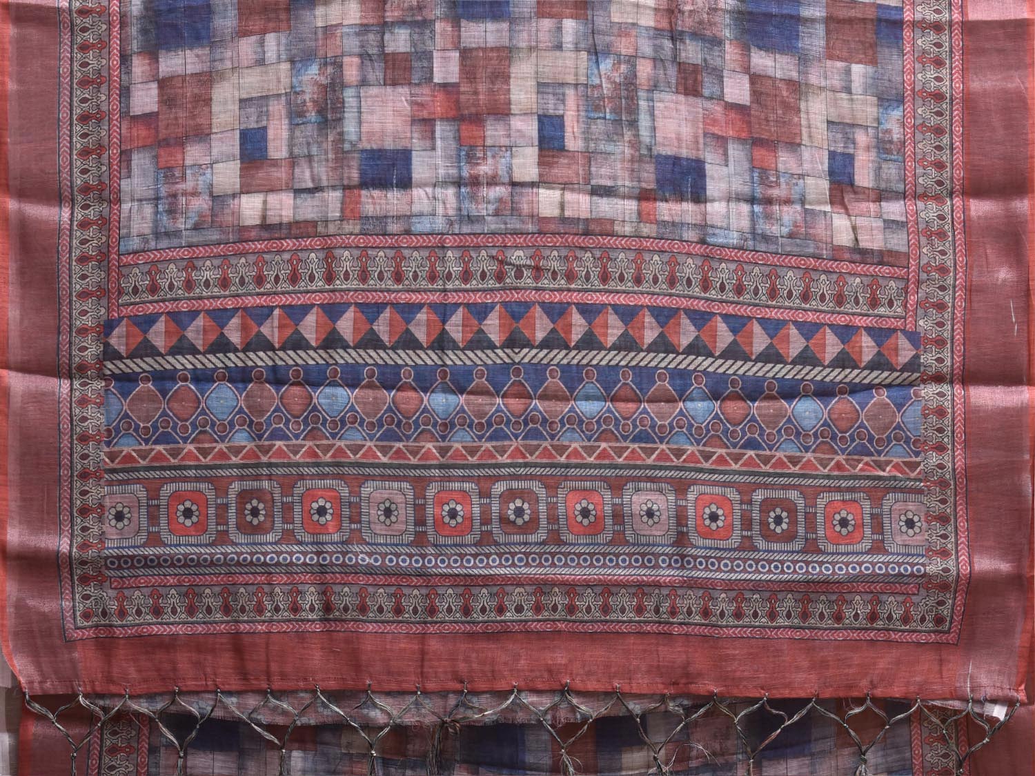 Multicolor Digital Print Linen Blend Saree with Abstract and Pallu Design o0748