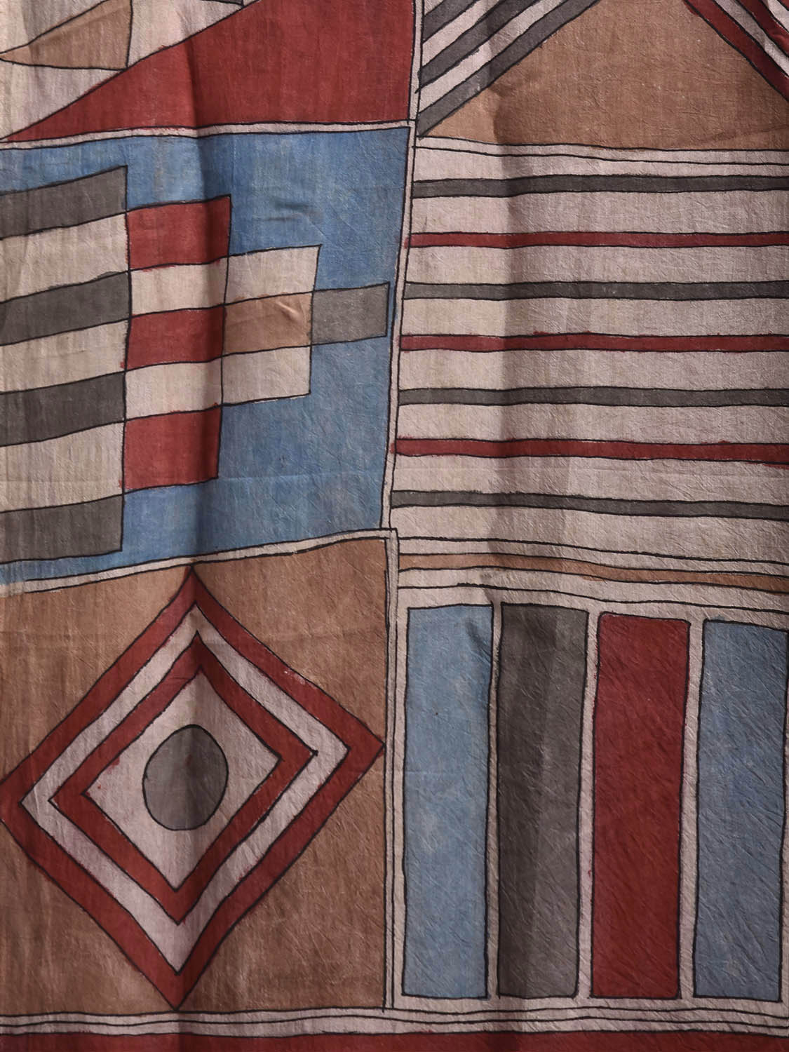 Multicolor Kalamkari Hand Painted Sico Saree with All Over Geometric Design KL0851