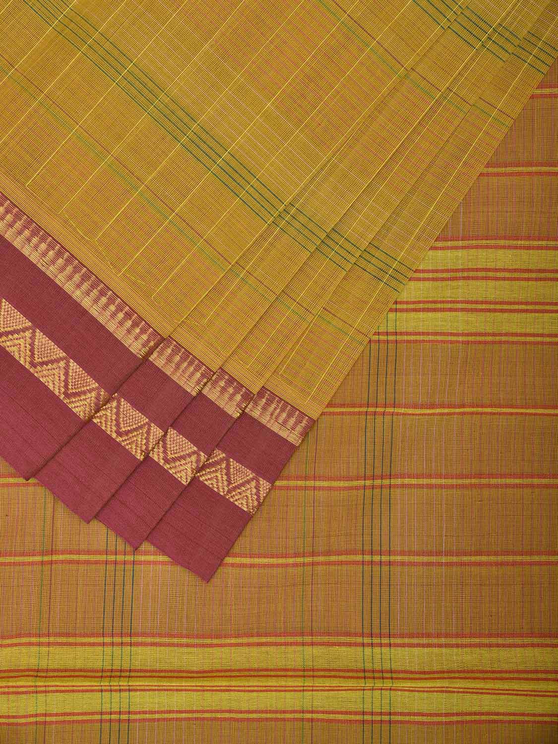 Mustard and Burgundy Narayanpet Cotton Handloom Saree with Strips Design No Blouse np1085