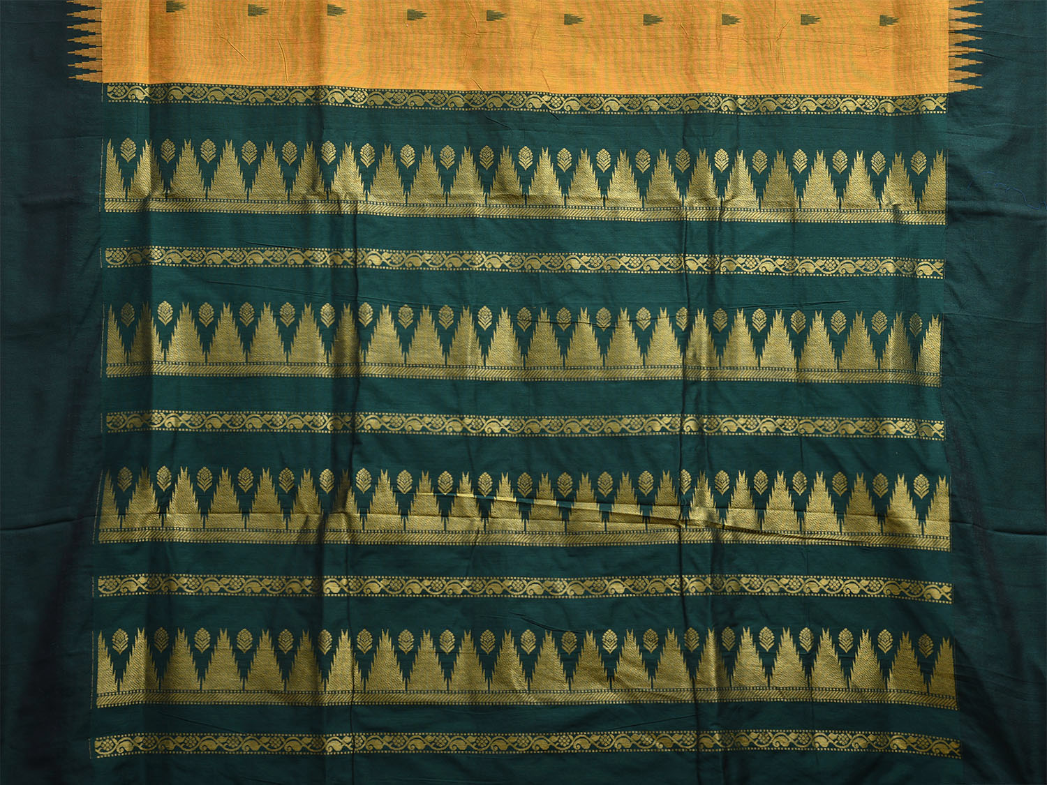 Mustard and Green Gadwal Cotton Saree with But and Temple Border Design g0447