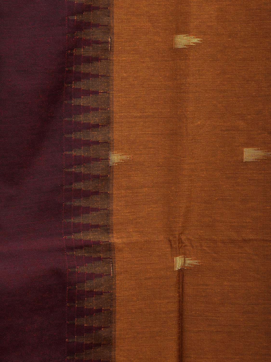 Mustard and Maroon Gadwal Cotton Saree with Pallu and Temple Border Design g0411