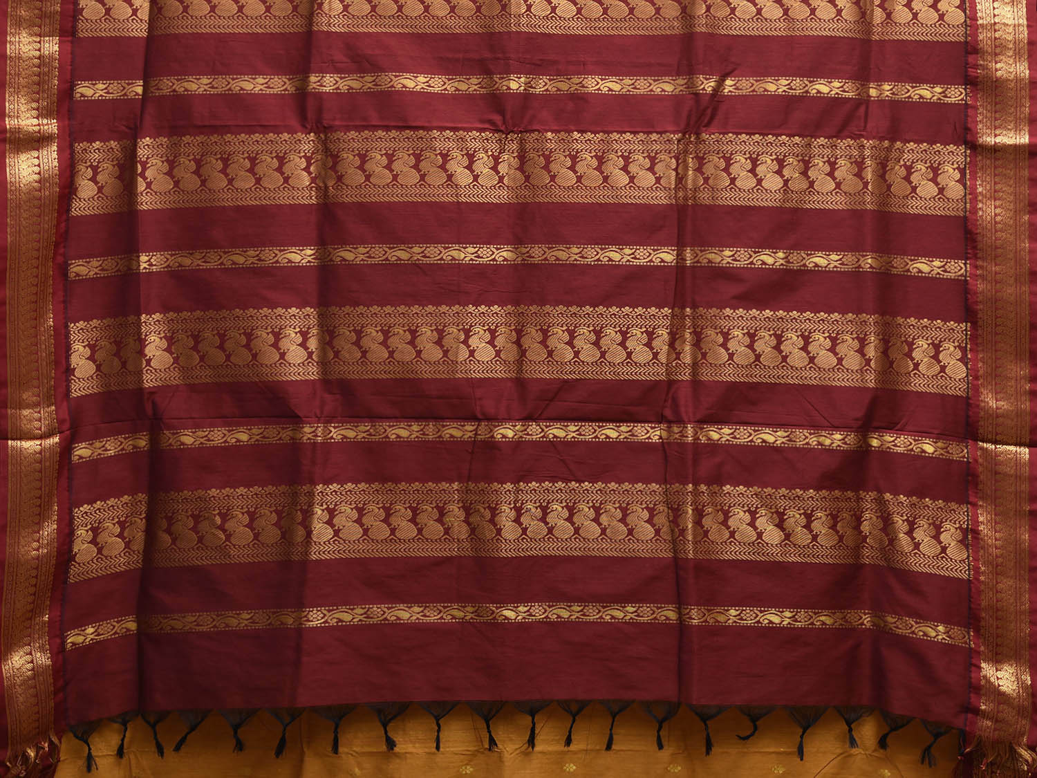 Mustard and Maroon Gadwal Cotton Viscose Saree with Border and Pallu Design g0546