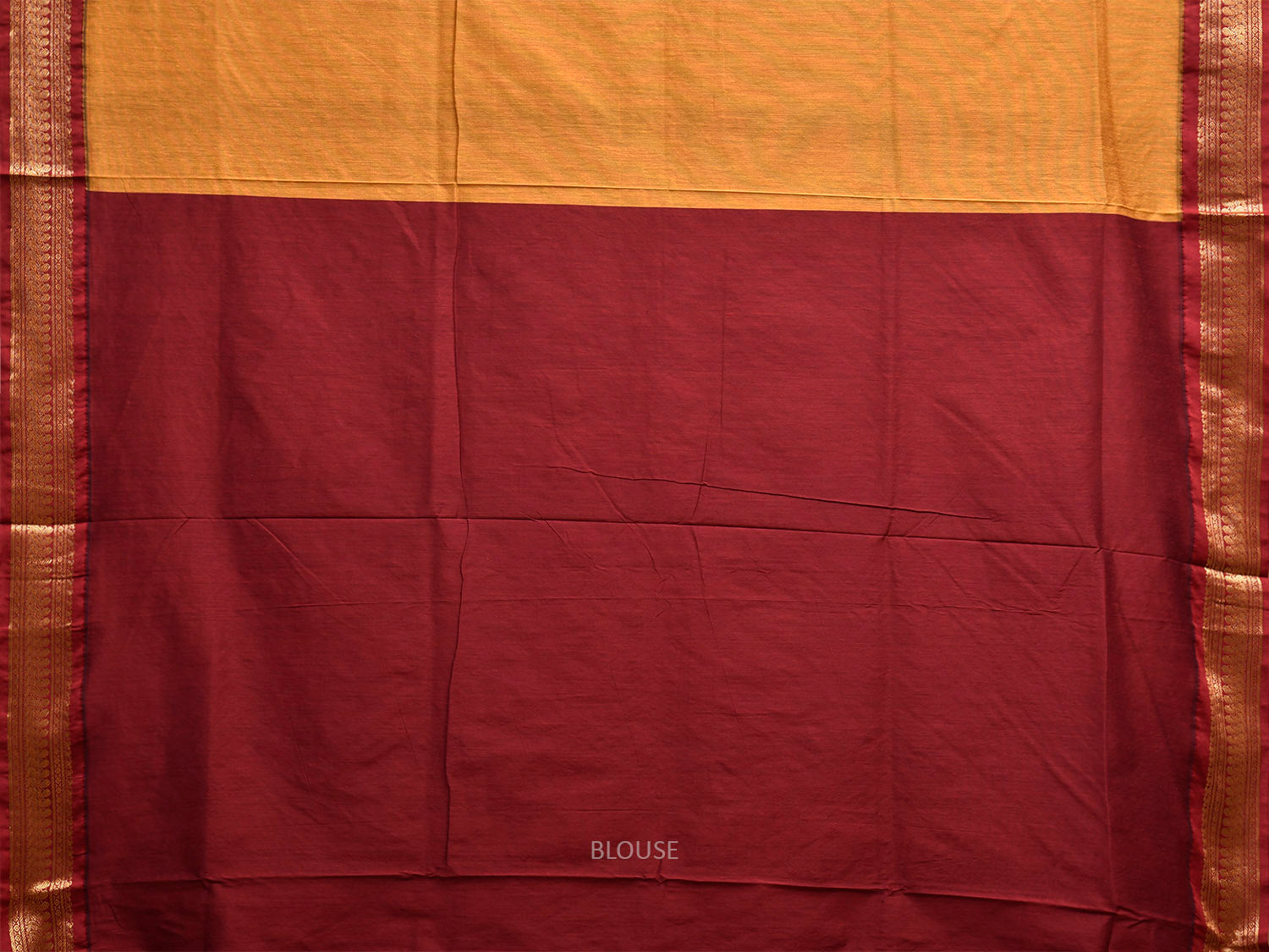 Mustard and Maroon Gadwal Cotton Viscose Saree with Border and Pallu Design. Gadwal Sarees are known for their tradtional design of border and pallu made of silk and body being either cotton or silk. They are known as Sico sarees for border and pallu being silk and body being cotton. We advice dry clean for fabric care.