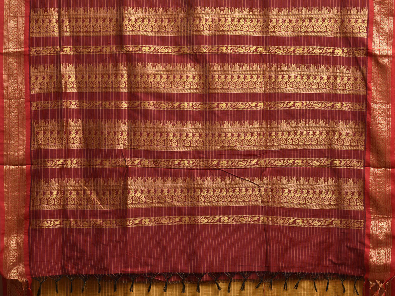 Mustard and Red Gadwal Cotton Viscose Saree with Checks and Pallu Design g0603