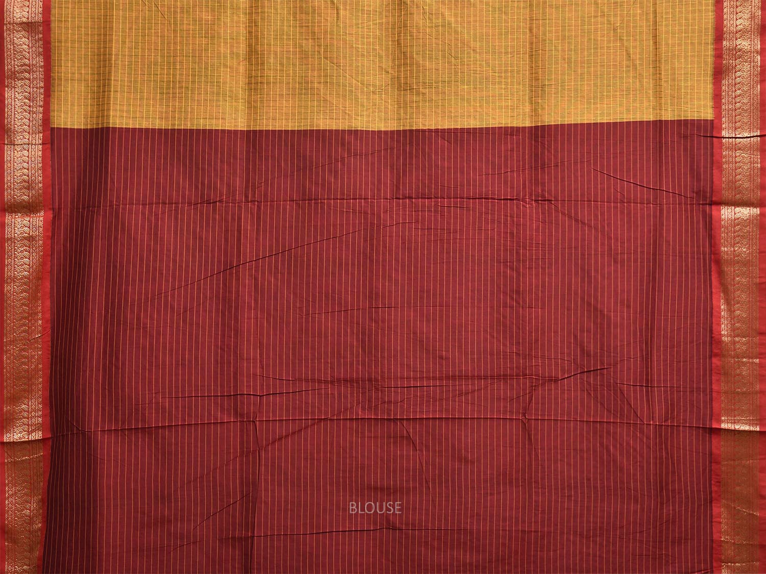 Mustard and Red Gadwal Cotton Viscose Saree with Checks and Pallu Design. Gadwal Sarees are known for their tradtional design of border and pallu made of silk and body being either cotton or silk. They are known as Sico sarees for border and pallu being silk and body being cotton. We advice dry clean for fabric care.
