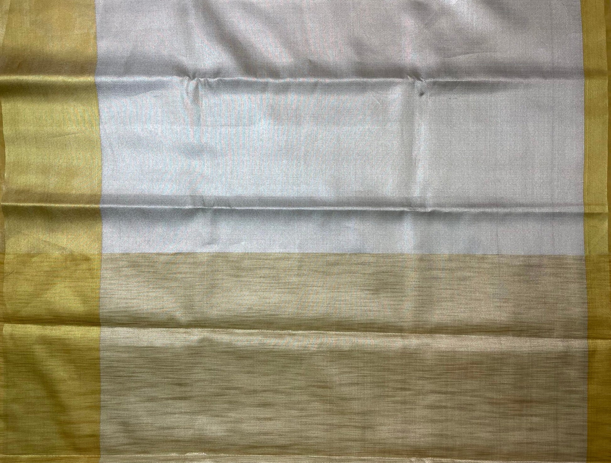 Mustard Banaras Tissue with Body and Temple Zari Border Design