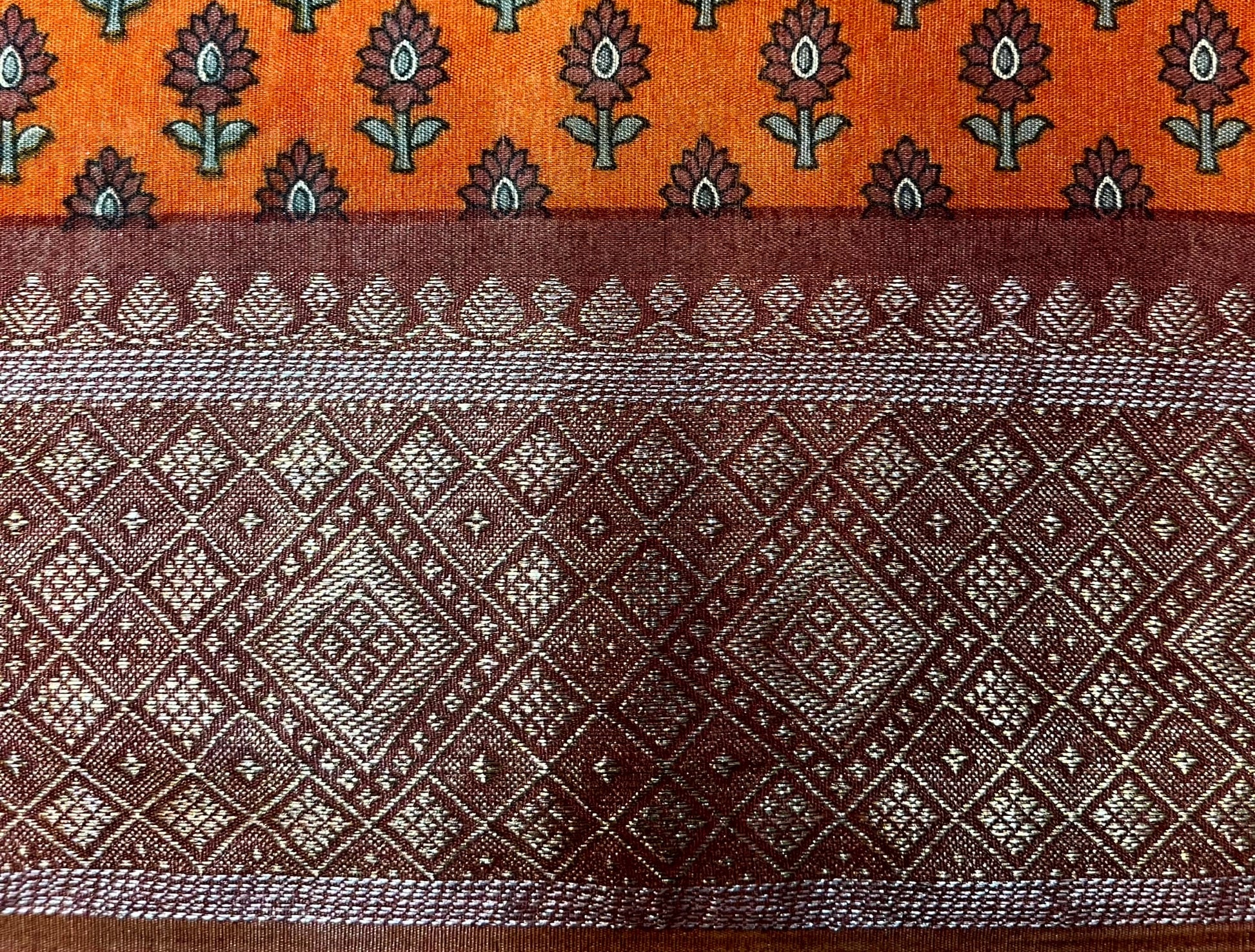 Mustard Viscose Silk Digital Print Zari Border with Body and Pallu Floral Design