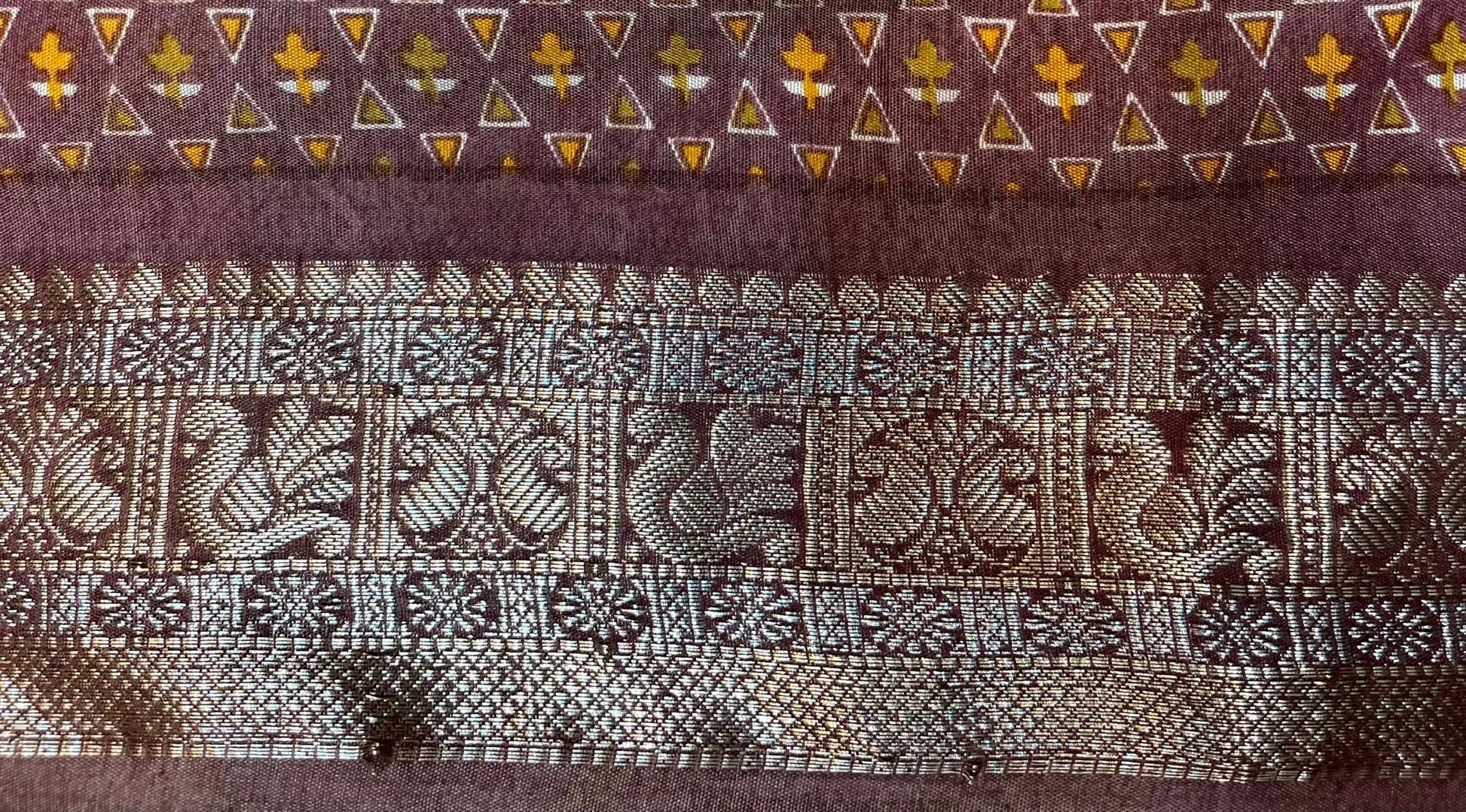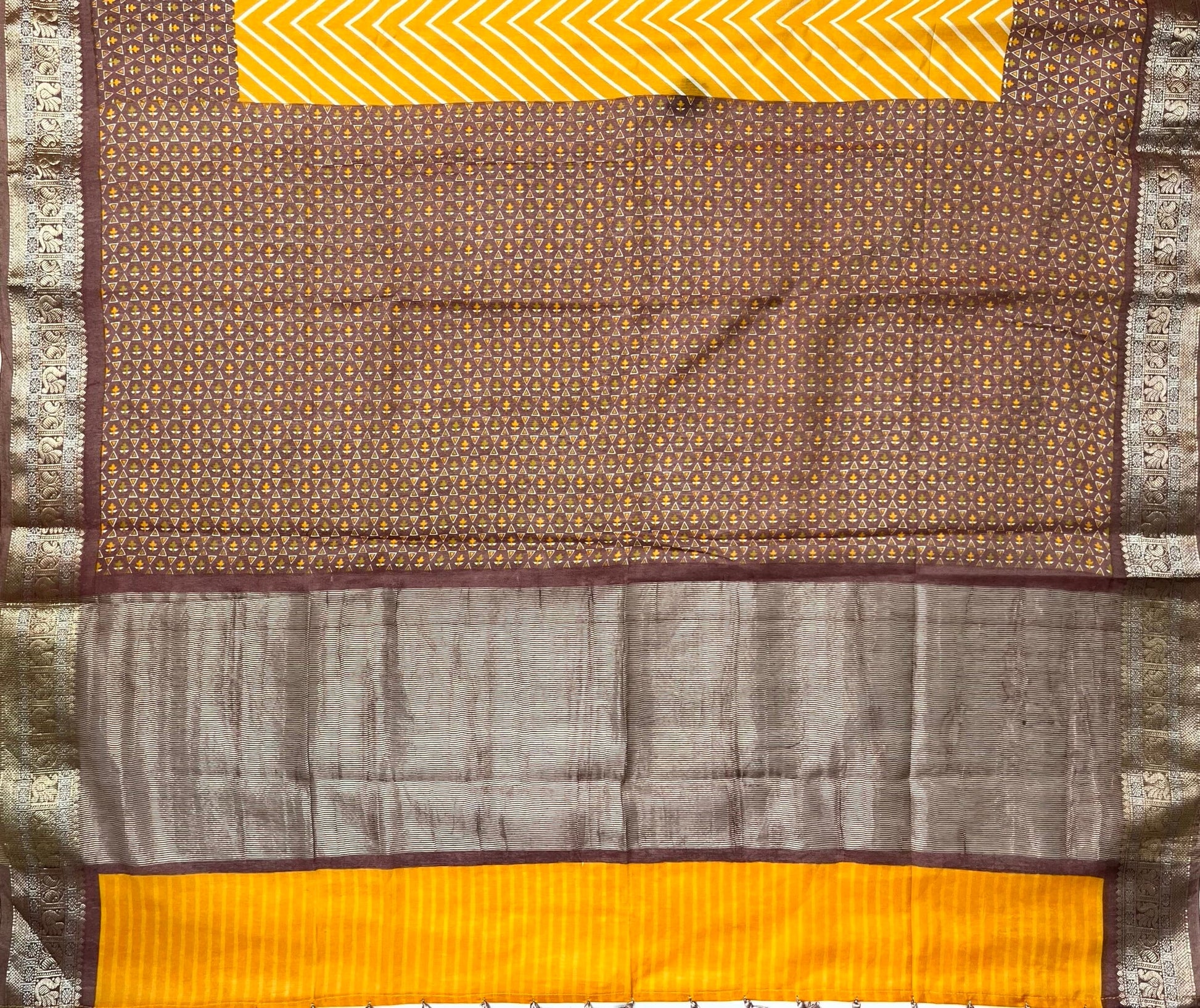 Mustard Viscose Silk Digital Print Zari Border with Body and Pallu Zig-Zag Design