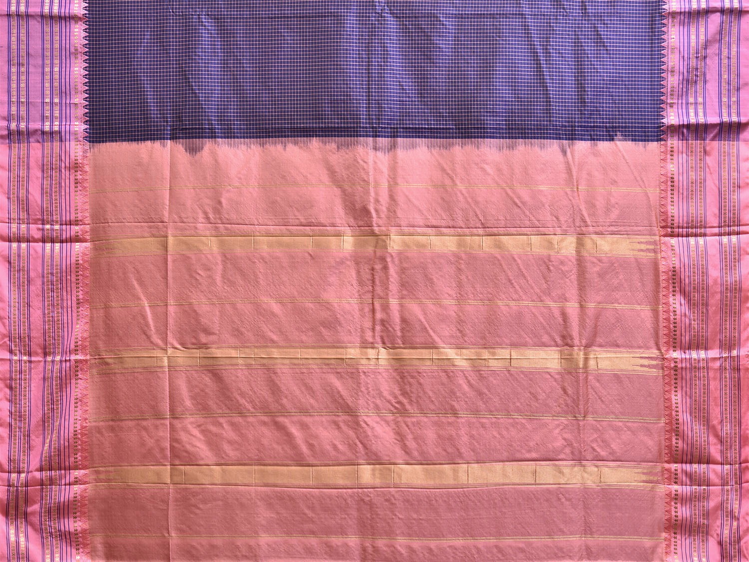 Navy and Baby Pink Narayanpet Silk Saree with Checks and Contrast Pallu Design np1326