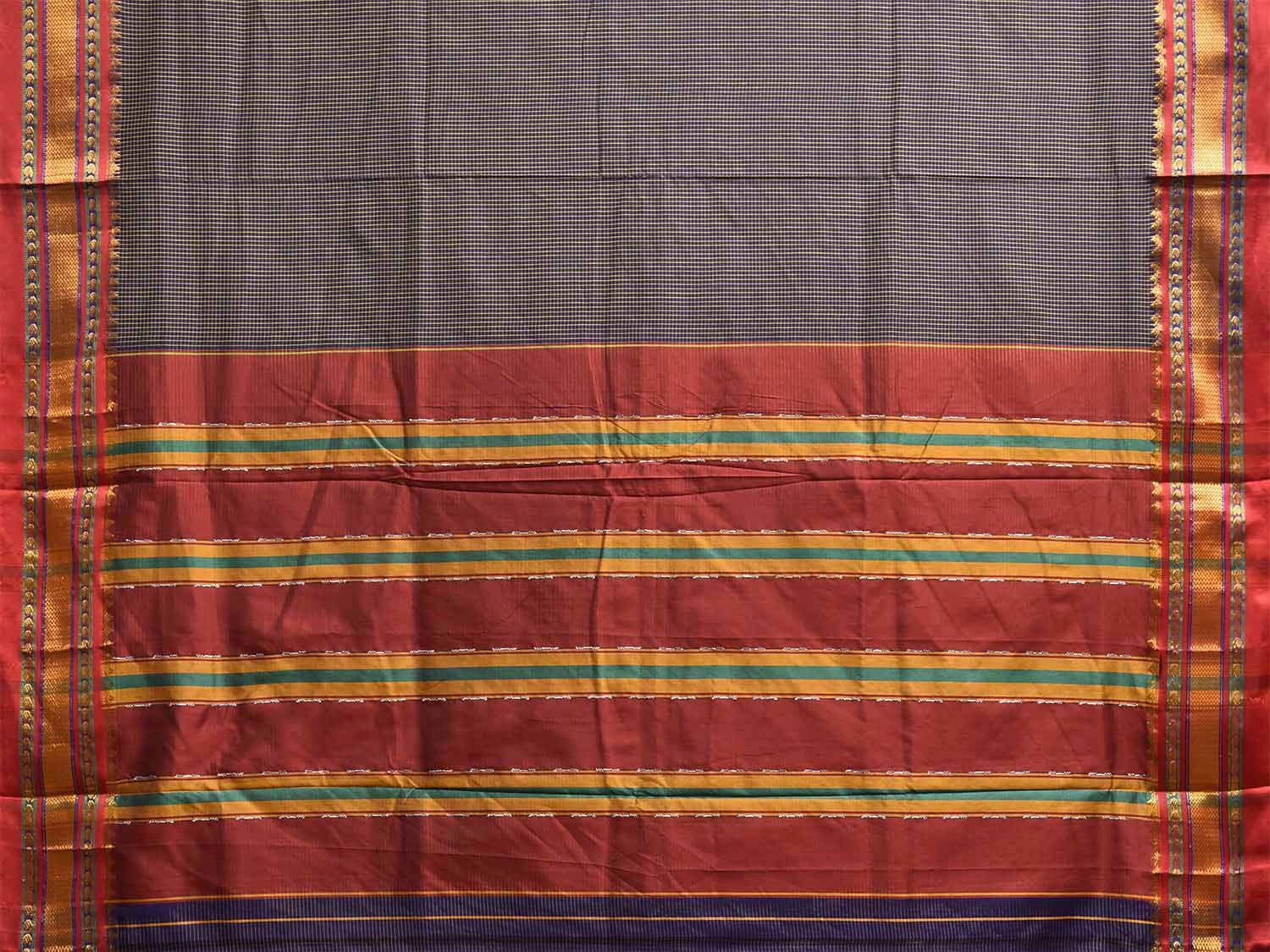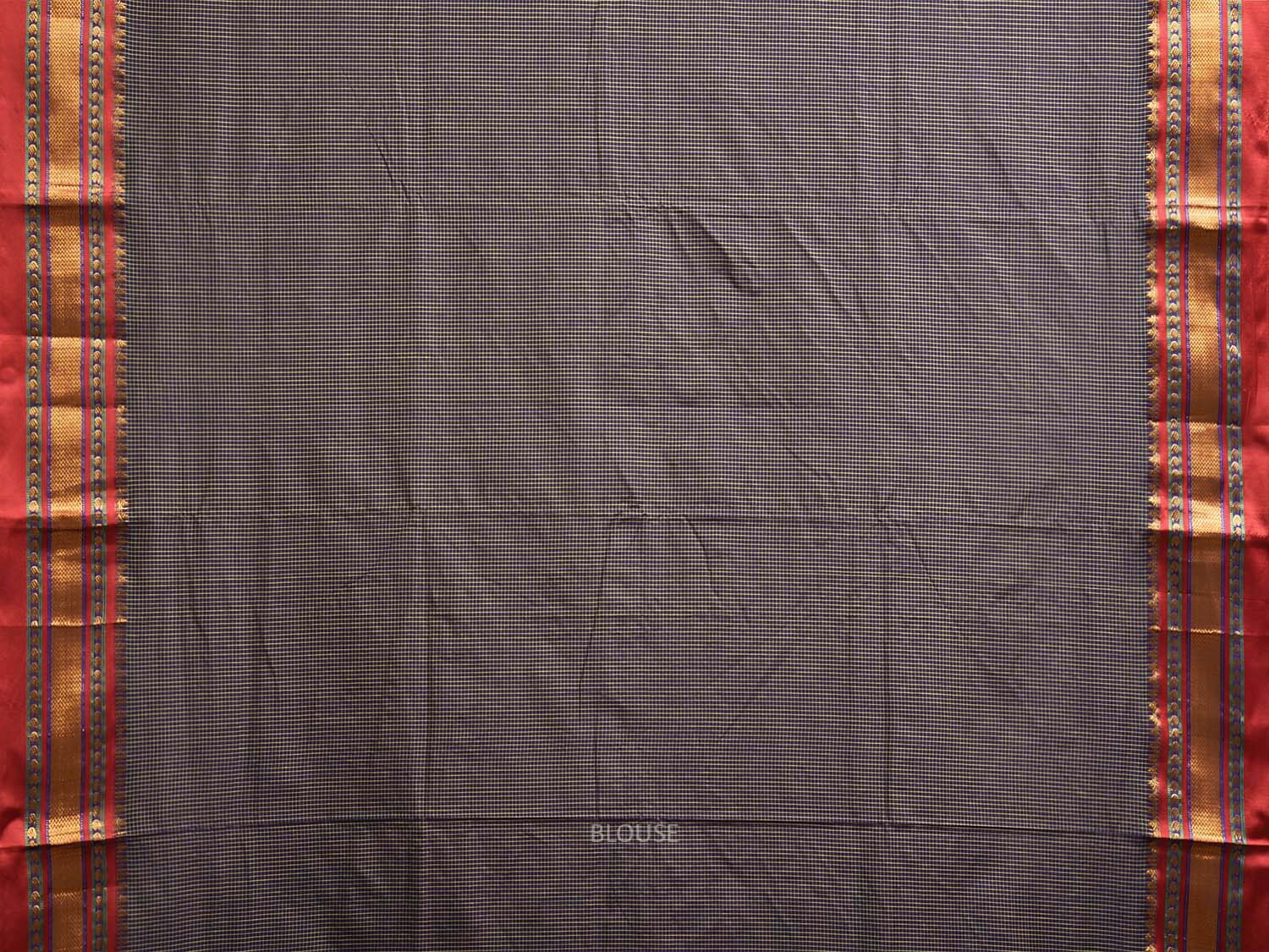 Navy and Dark Red ilkal Viscose Saree with Small Checks and Strips Pallu Design. For fabric care we advise gentle handwash separately.