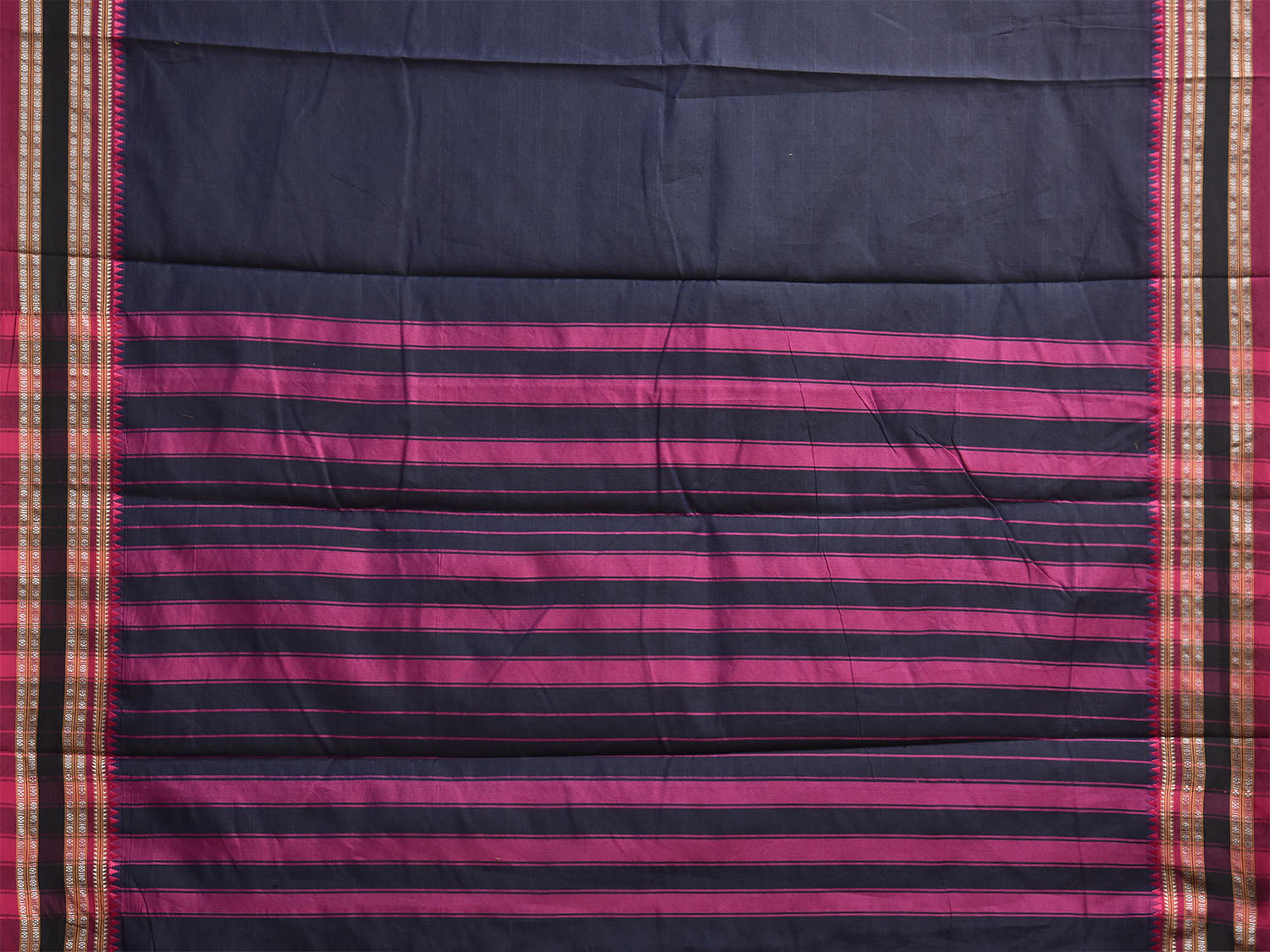 Navy and Pink Bamboo Cotton Plain Saree with Strips Pallu Design No Blouse bc1064