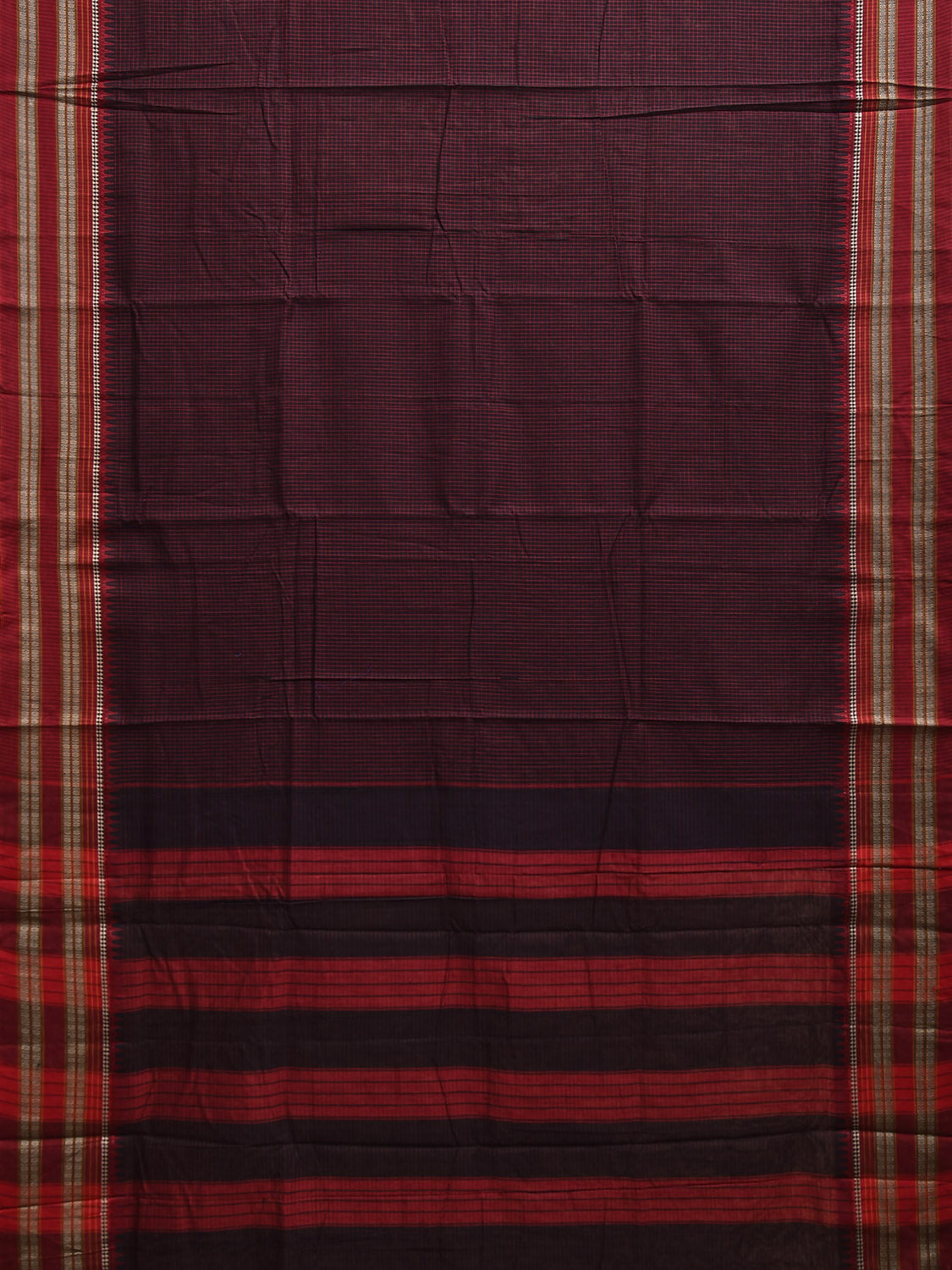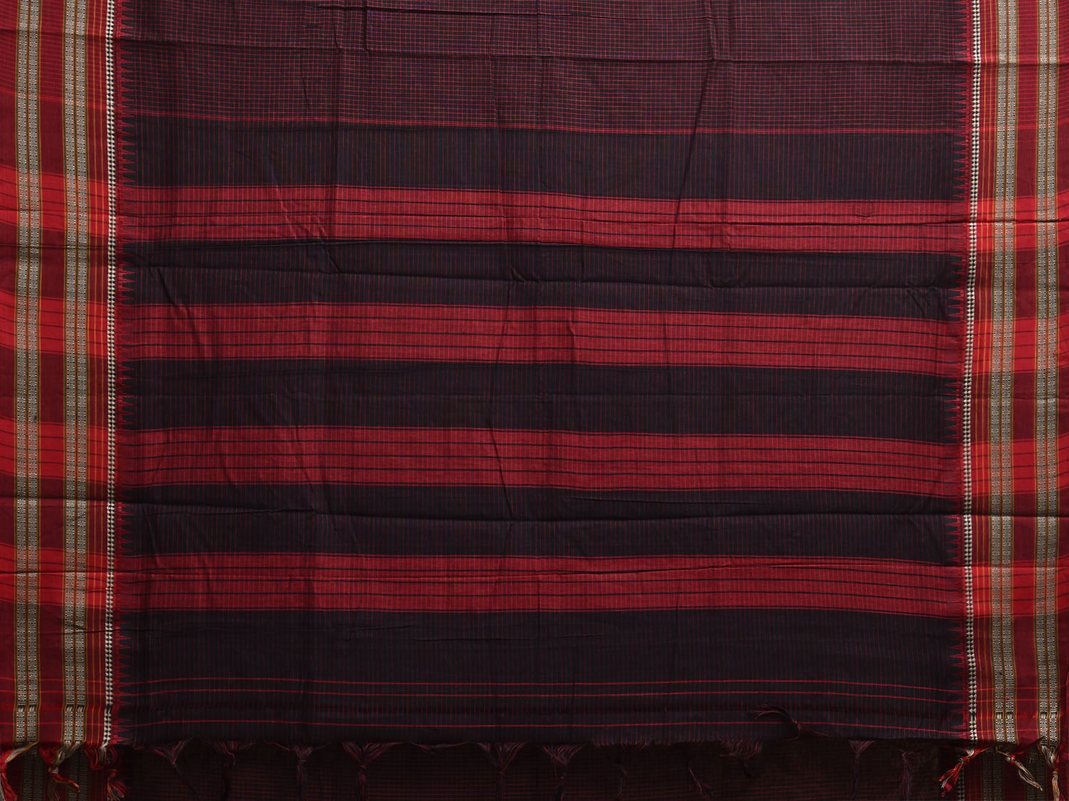 Navy and Red Narayanpet Cotton Saree with Checks and Strips Pallu Design No Blouse np1154