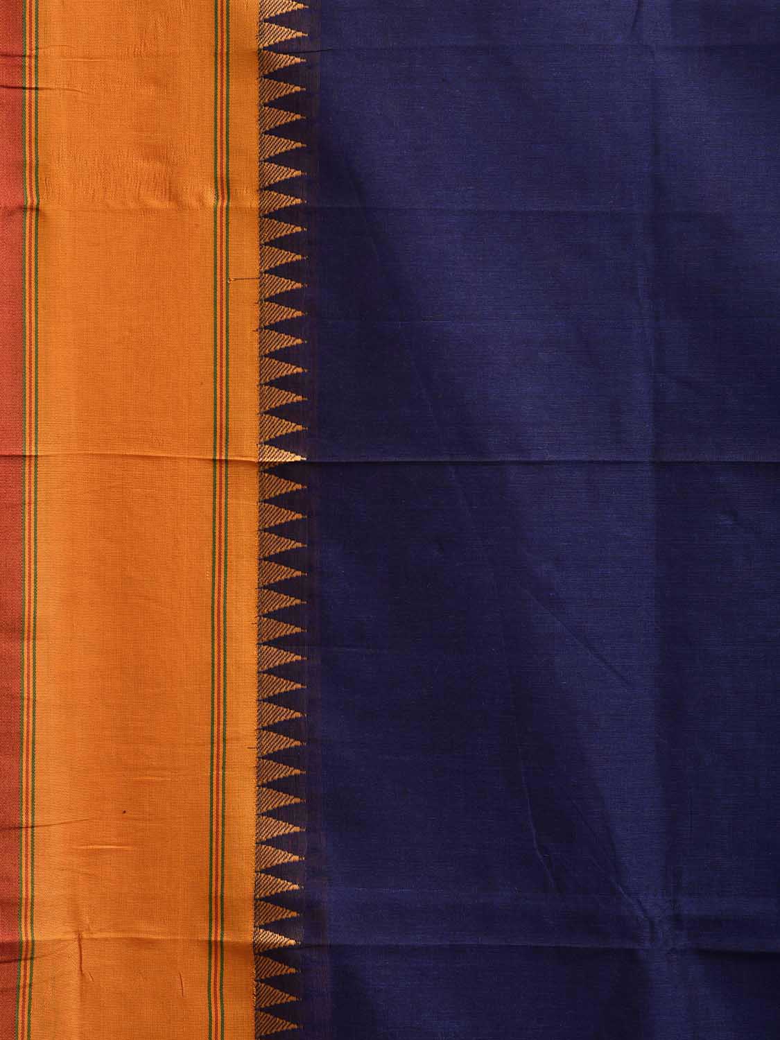 Navy and Yellow Kanchipuram Cotton Plain Saree with Strips Pallu Design k0927
