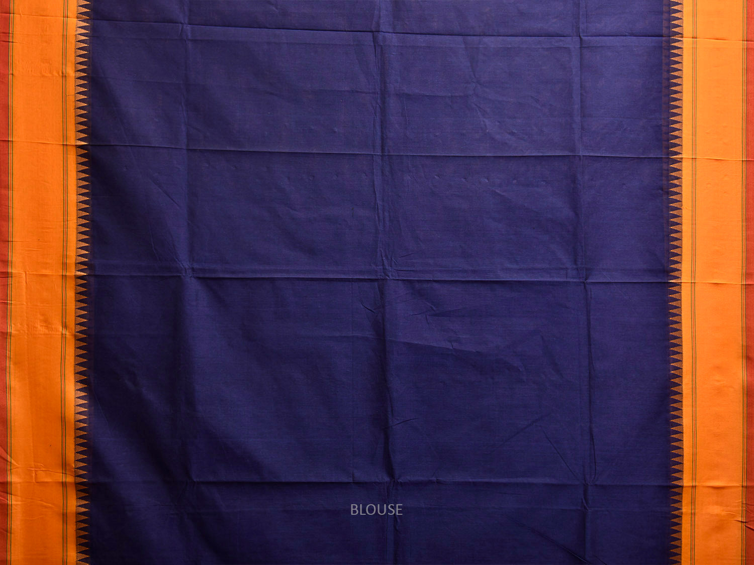 Navy and Yellow Kanchipuram Cotton Plain Saree with Strips Pallu Design. Traditional Simple South Indian Attire Saree for any Casual Occasions. As it’s a cotton saree we advice gentle handwash separately for fabric care.