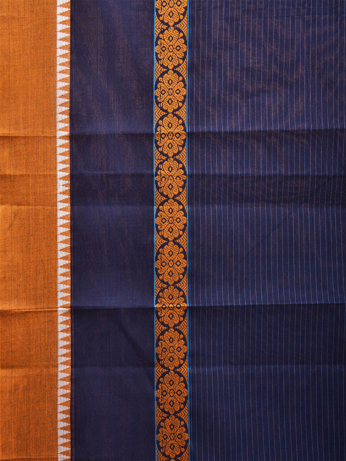 Navy and Yellow Narayanpet Cotton Handloom Saree with Strips Design No Blouse np0980