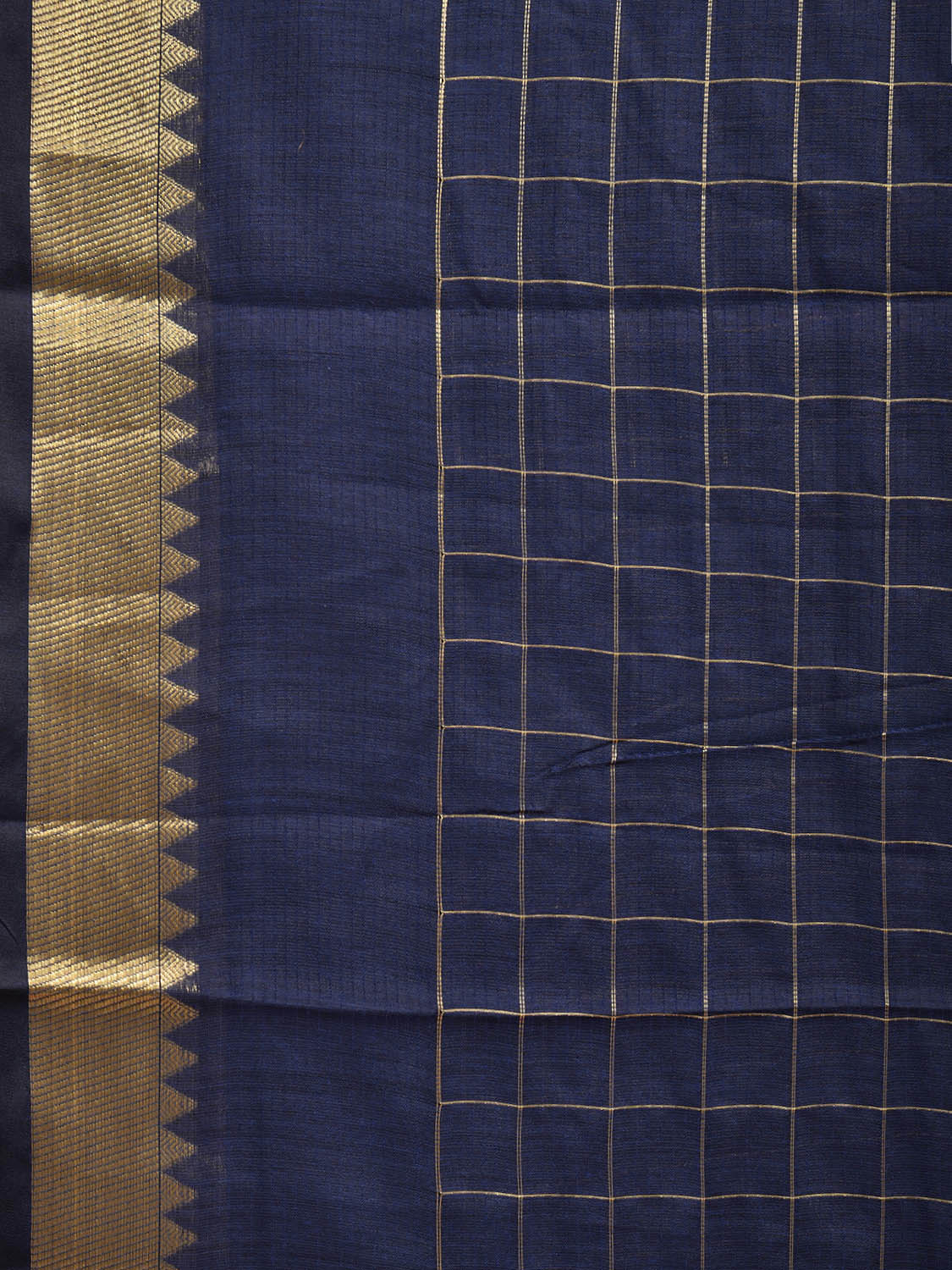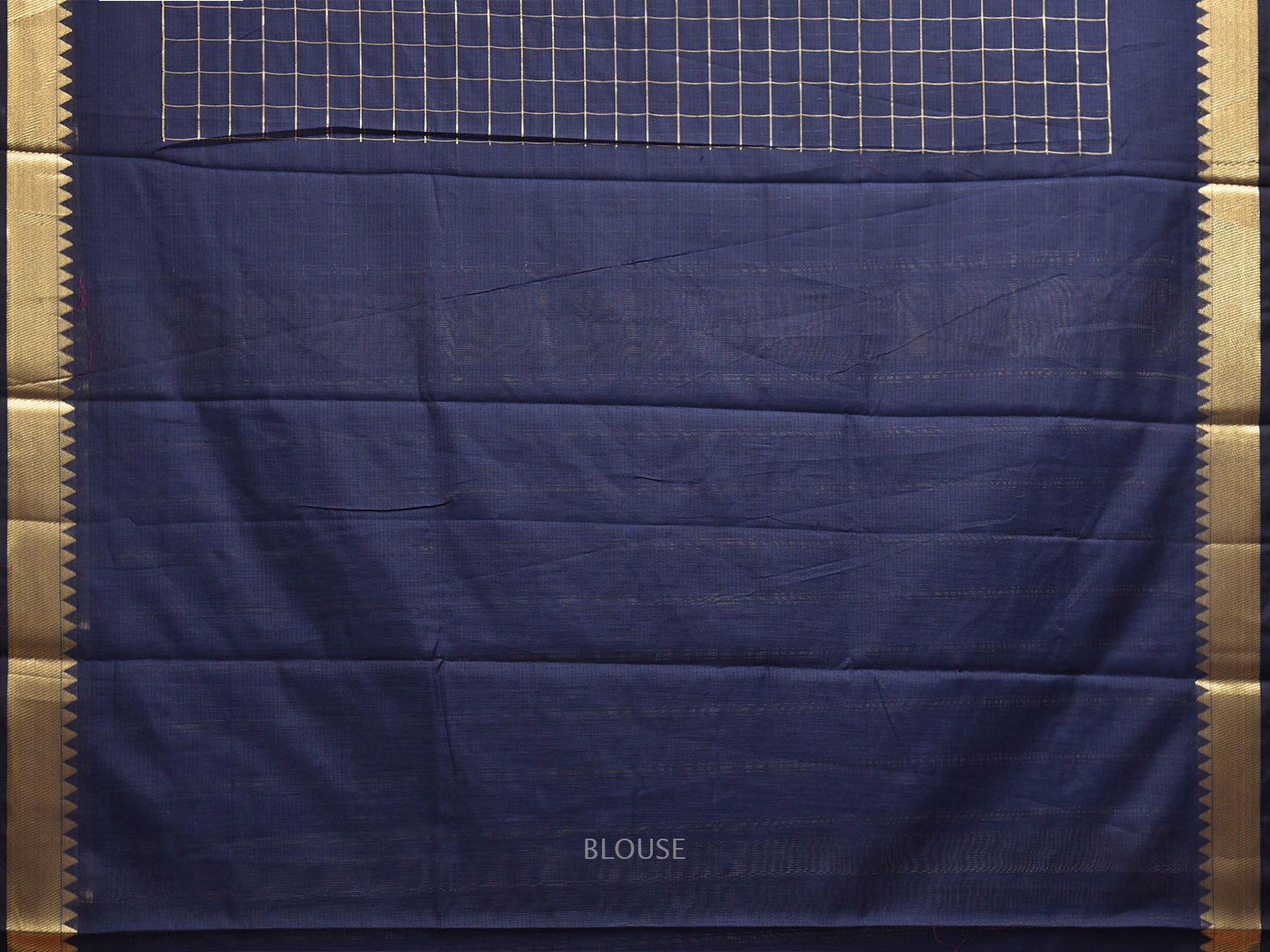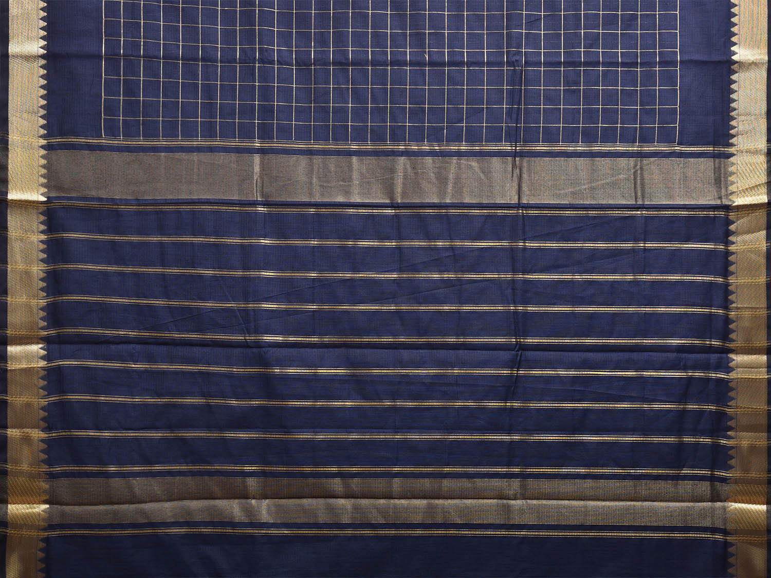 Navy Mangalgiri Cotton Saree with Checks and Strips Pallu Design mn0088