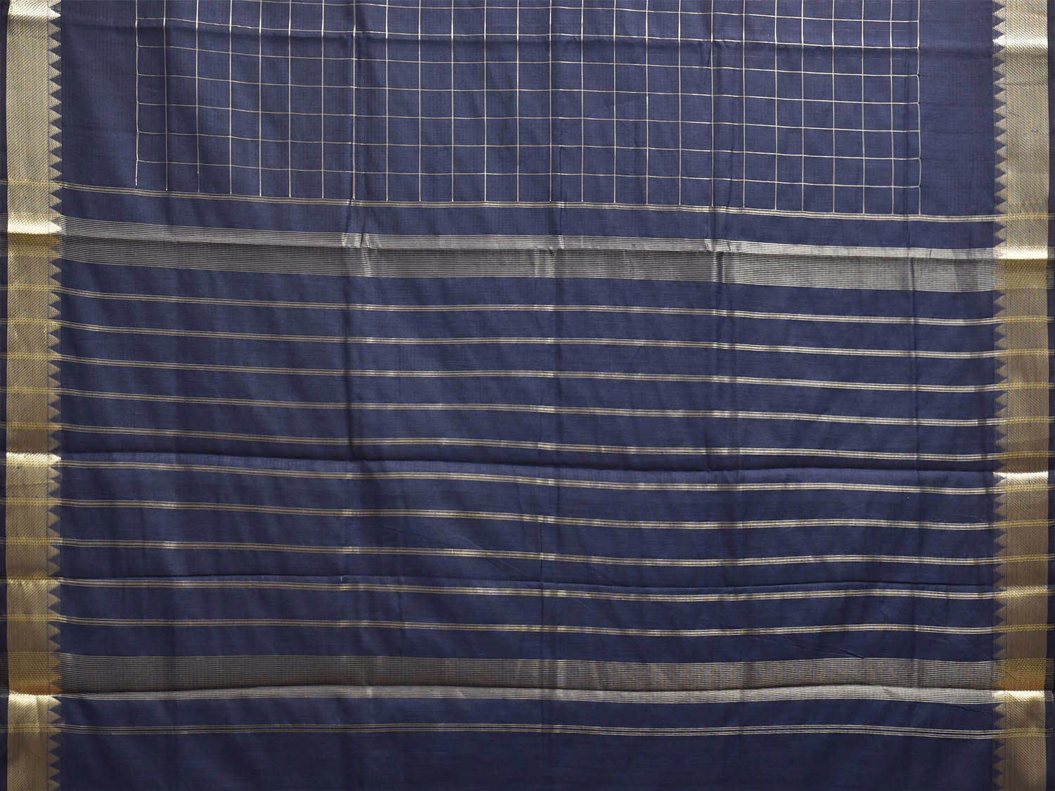 Navy Mangalgiri Cotton Viscose Saree with Checks Design mn0146