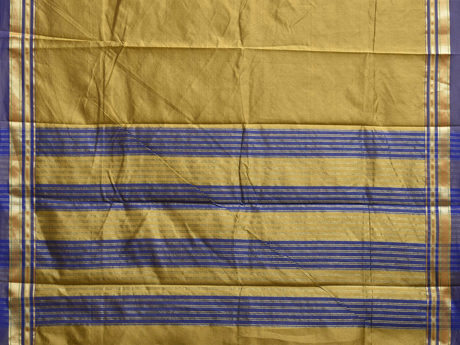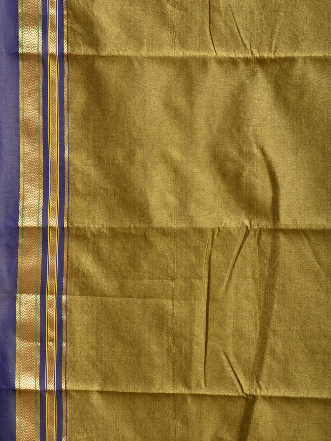 Olive and Blue Bamboo Cotton Viscose Silk Plain Saree with Strips Pallu Design No Blouse bc0922