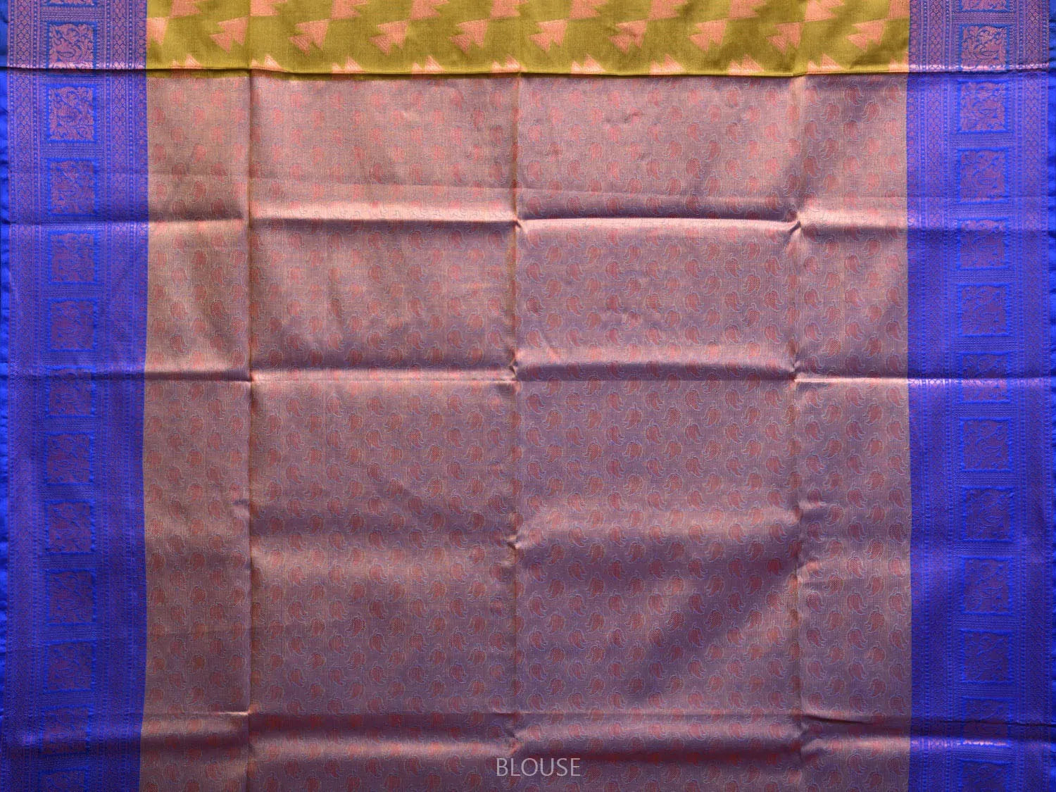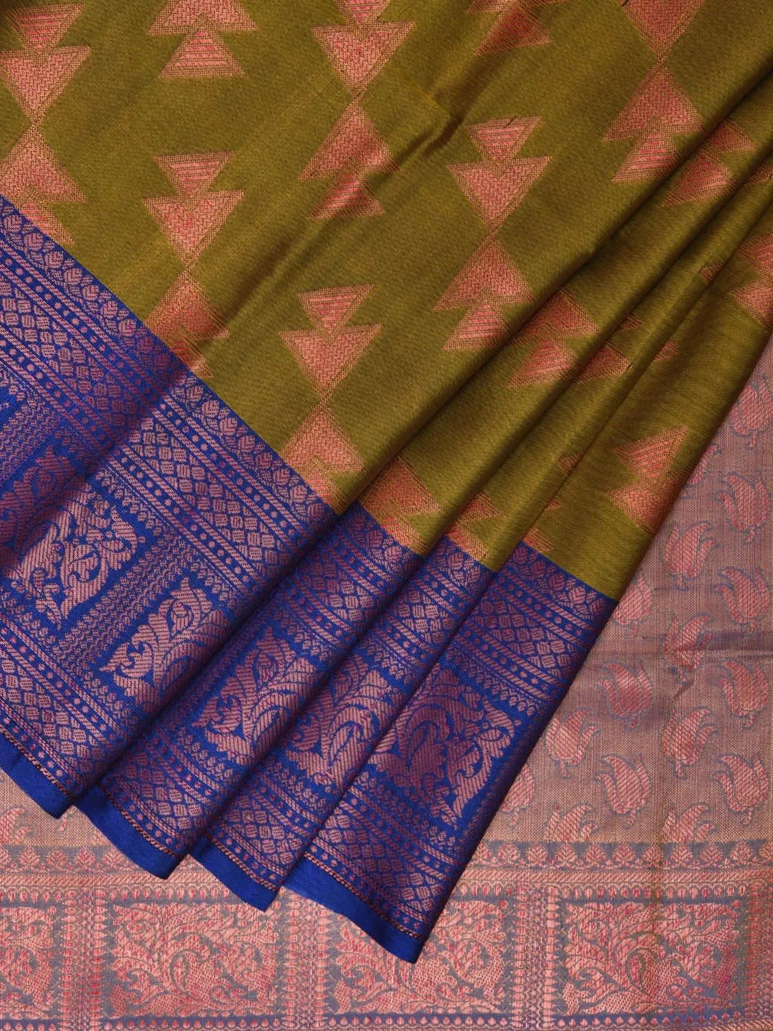 Olive and Blue Banaras Katan Silk with Border and Body Butta Design
