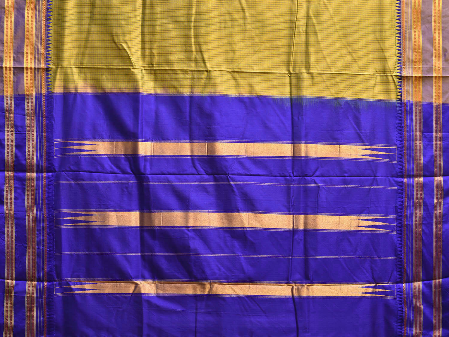 Olive and Blue Narayanpet Silk Handloom Saree with Checks and Contrast Pallu Design No Blouse np1270