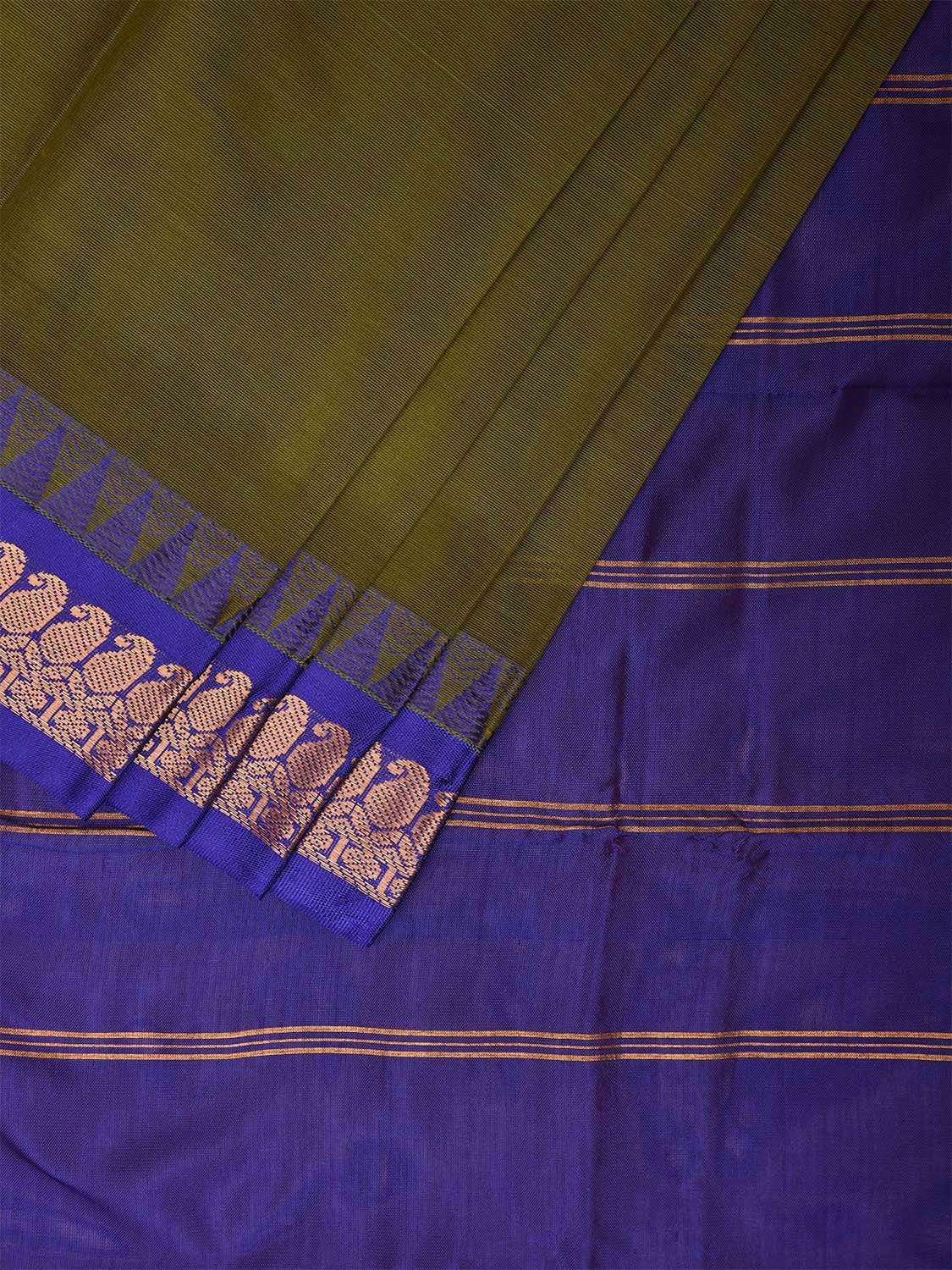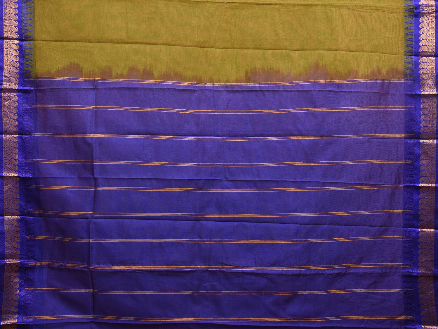 Olive and Dark Blue Gadwal Cotton Plain Saree with Strips Pallu and Border Design No Blouse g0406
